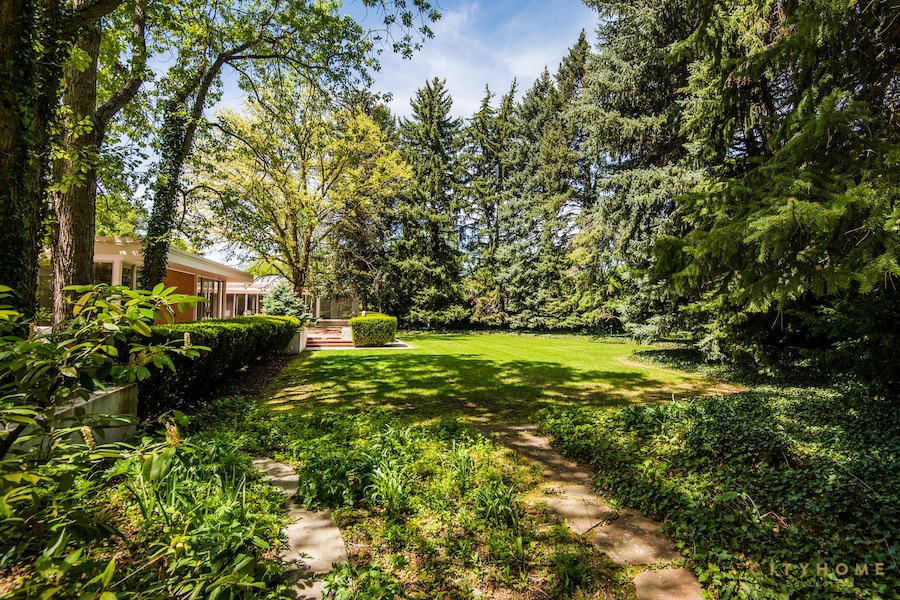 4) Georgian on Dorchester. This yard is a lesson in serenity--something that we could all use a touch of from time to time. A still, quiet pond and wee, trickling waterfall are surrounded by gorgeous landscaping on the side of the home. Around back, a tiered courtyard and gardens are punctuated by a dining spot, fire pit, and pergola…and the sort of lighting that'll have you chatting and sipping wine all the live-long night. More good news, too: it's currently on the market and yours for the taking. See the listing story here.