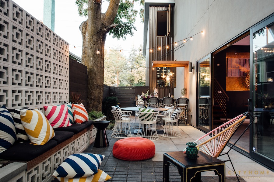 3) Cottonwood Circle. The thing is, we looooove a good party. Gatherings are kind of our gig, so the yard (and adjoining patio space) below get our COLLECTIVE wheels spinning in a major way. You're set for any type of gathering here, from corn hole competitions to proper parties with a jazz band, fully-stocked bar, and proper dance floor…it all works. Indoor/outdoor ease (those windows!), and with that wall of high trees, you've got the privacy box checked, as well. Bonus: this one's on the market and has loads of character. See the listing story here.