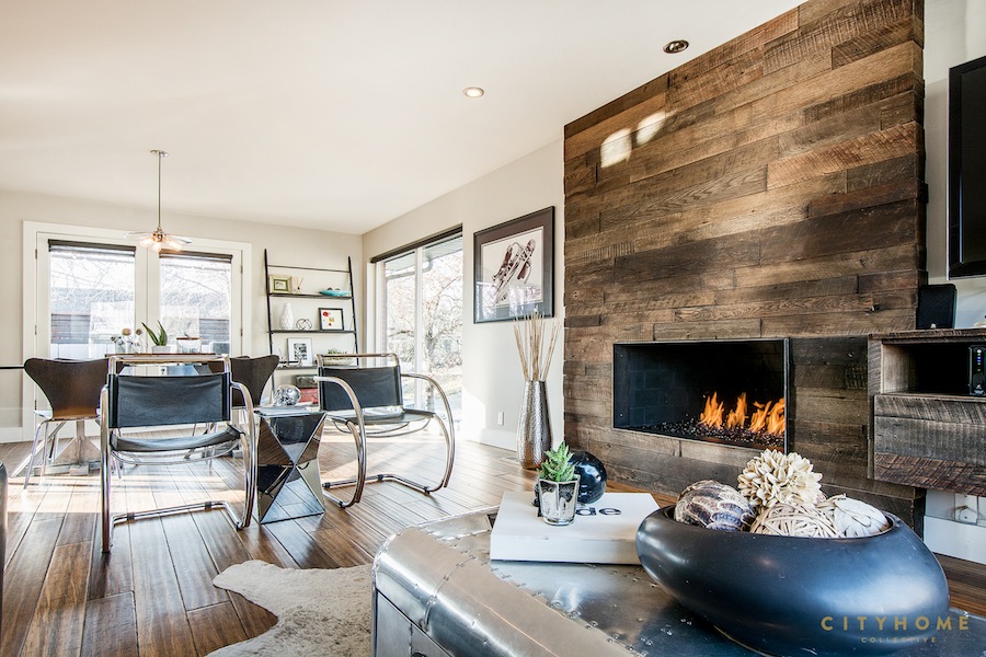 We first got sweet on this modern in the Cove when Cody owned it way back when, but the old flame was rekindled when we sold it for a second time last year. Built in 1957, this midcentury beaut has fab views of Mt. Olympus and some truly covetable design. The open floor plan, with steel and glass accents, is perfectly offset by this charred-wood wrapped, double-sided fireplace [that continues through to the basement]. It's one of the dreamiest casas we ever did have the pleasure to know, and this hearth does her some hearty justice. See the full design here.