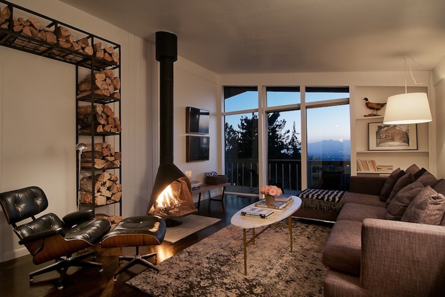 This Ron Molen number is likely what you'll find in the Encyclopedia Americana under "remodeling done right". This stellar stove pipe fireplace is the cherry on top of this modern casas's perfect blend of masculine and feminine vibes. And those valley views ain't nothin' to shake a stick at, neither. See the full design here.
