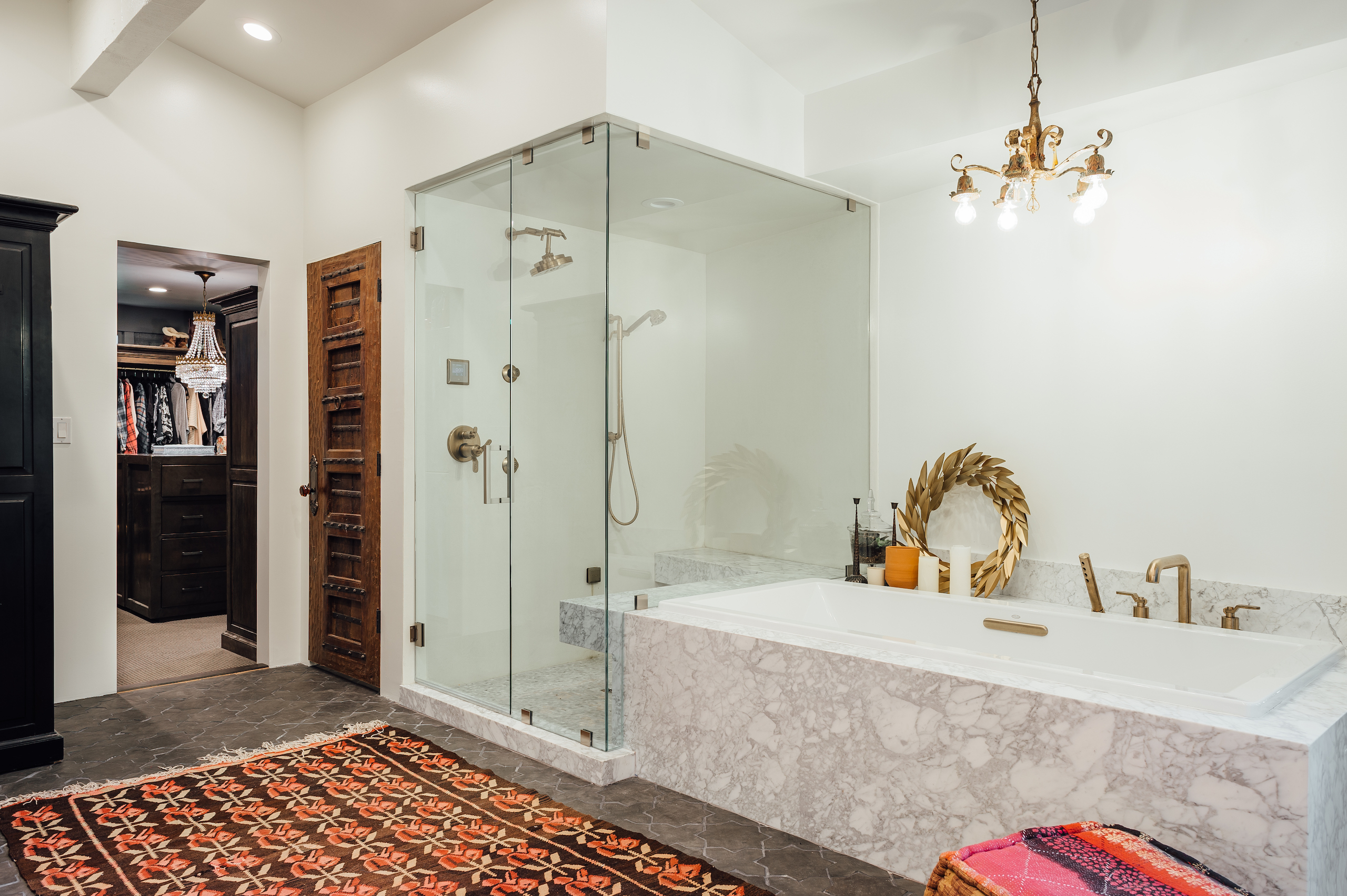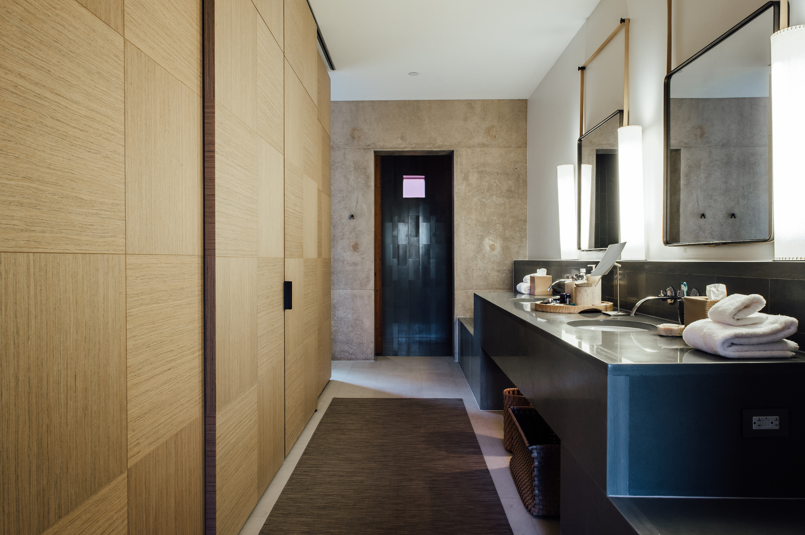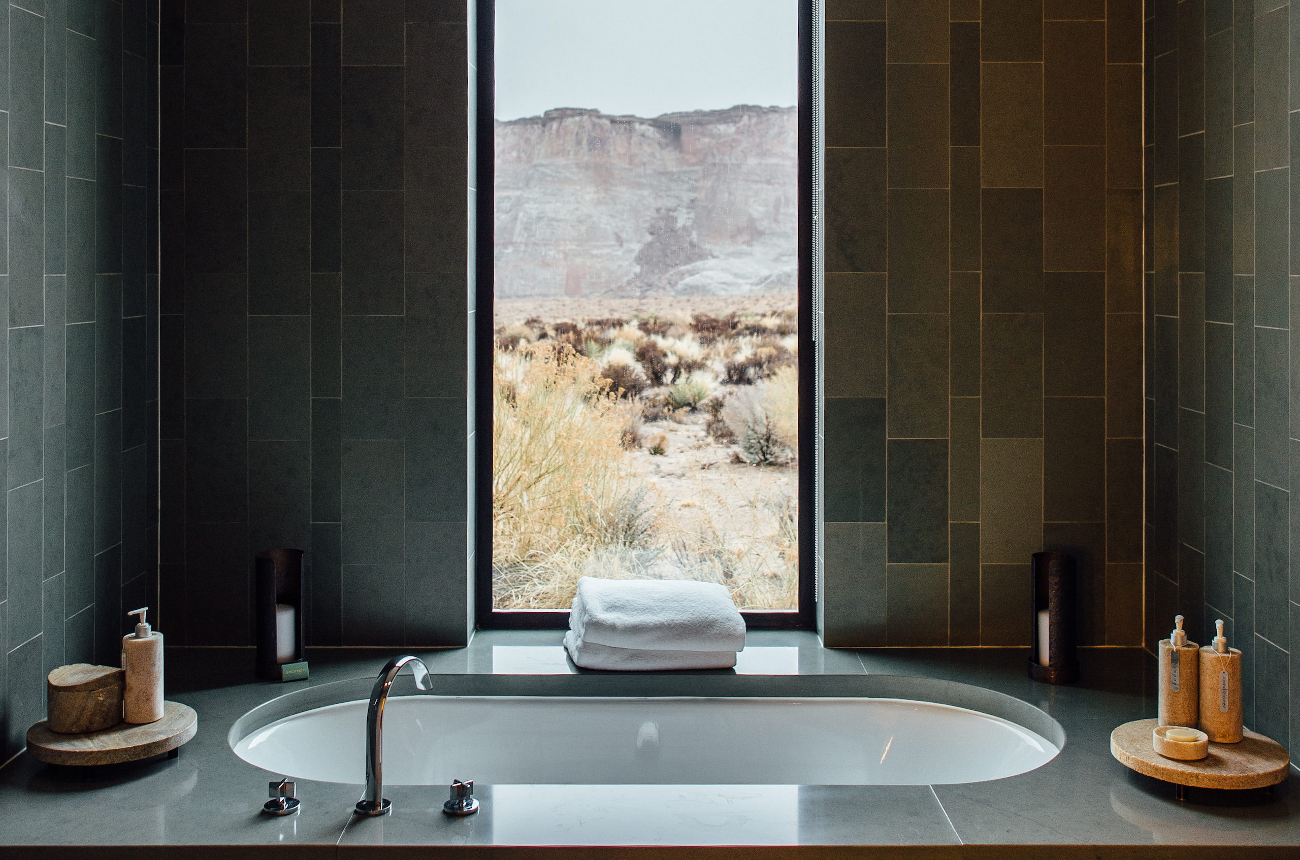 Though we don't see them so often, the suites at Amangiri have a permanent place in our memory, and with them, their sleek, desert-adjacent baths. In perfect, congruent harmony with the surrounding natural environment, every last material in this secluded resort aligns with 'aaahhh'. Hidden storage, a calming color palette, and wild, arid views that you don't often see from a tub. Privacy is of little concern, for the place was built on the very principal. One's only consideration here is the inevitable pruning that comes with a 5-hour bath.