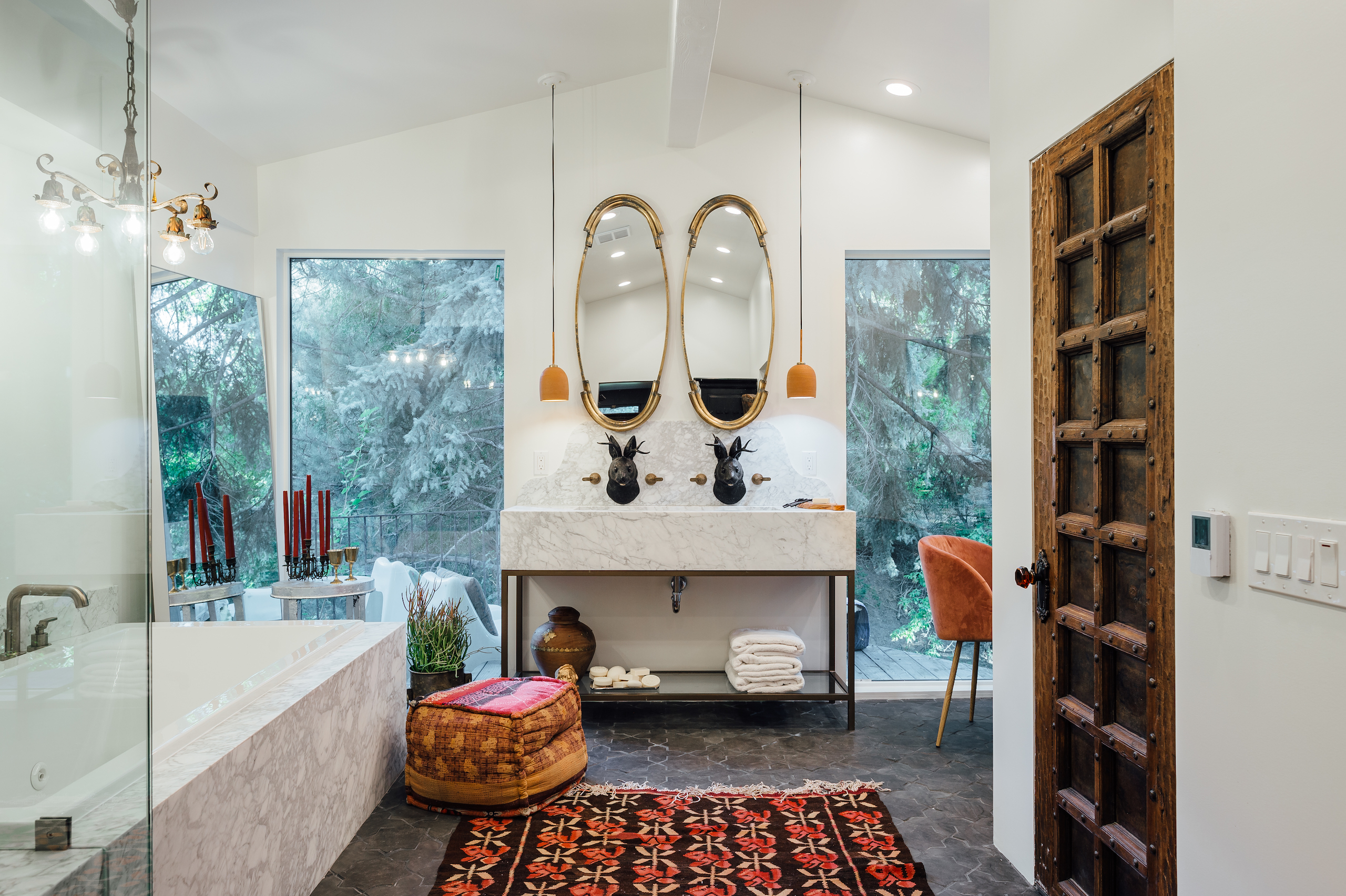 We can’t say we were surprised when this home was snapped up within the first weekend it was listed on this very site. The design is impeccable (a collaborative effort between yours truly and the former owner), and the subtle infusion of west coast style assures those within a sunny disposition whatever the weather. We’re particularly entranced with this powder room, which is sporting a refreshing design that’s subtly Spanish, slightly mid-mod, and sensibly tethered in classic stylings. A pair of jackalope-bust faucets are the perfect cufflinks to tie together this delightfully-snazzy ensemble.