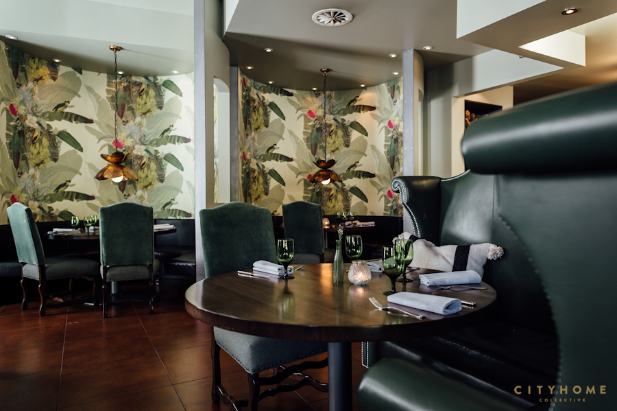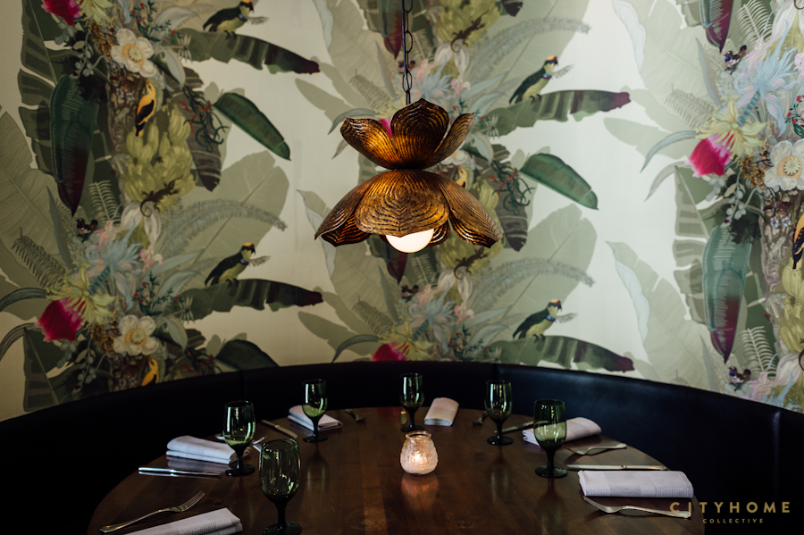 3) Dark Floral by Ellie Cashman. Oh, you've seen this one. We've all seen this one. It's a project near and dear to our COLLECTIVE hearts. Lining the walls of Finca's three private rooms is a wallpaper that's made for loving. A massive, looming wall of flowers...bold and multidimensional AF, to be certain, and the perfect backdrop for romantic tapas or a photo shoot. We chose this paper before we chose the paint in this project, and rightly so. It's equal parts intoxicating and moody. The perfect bouquet.