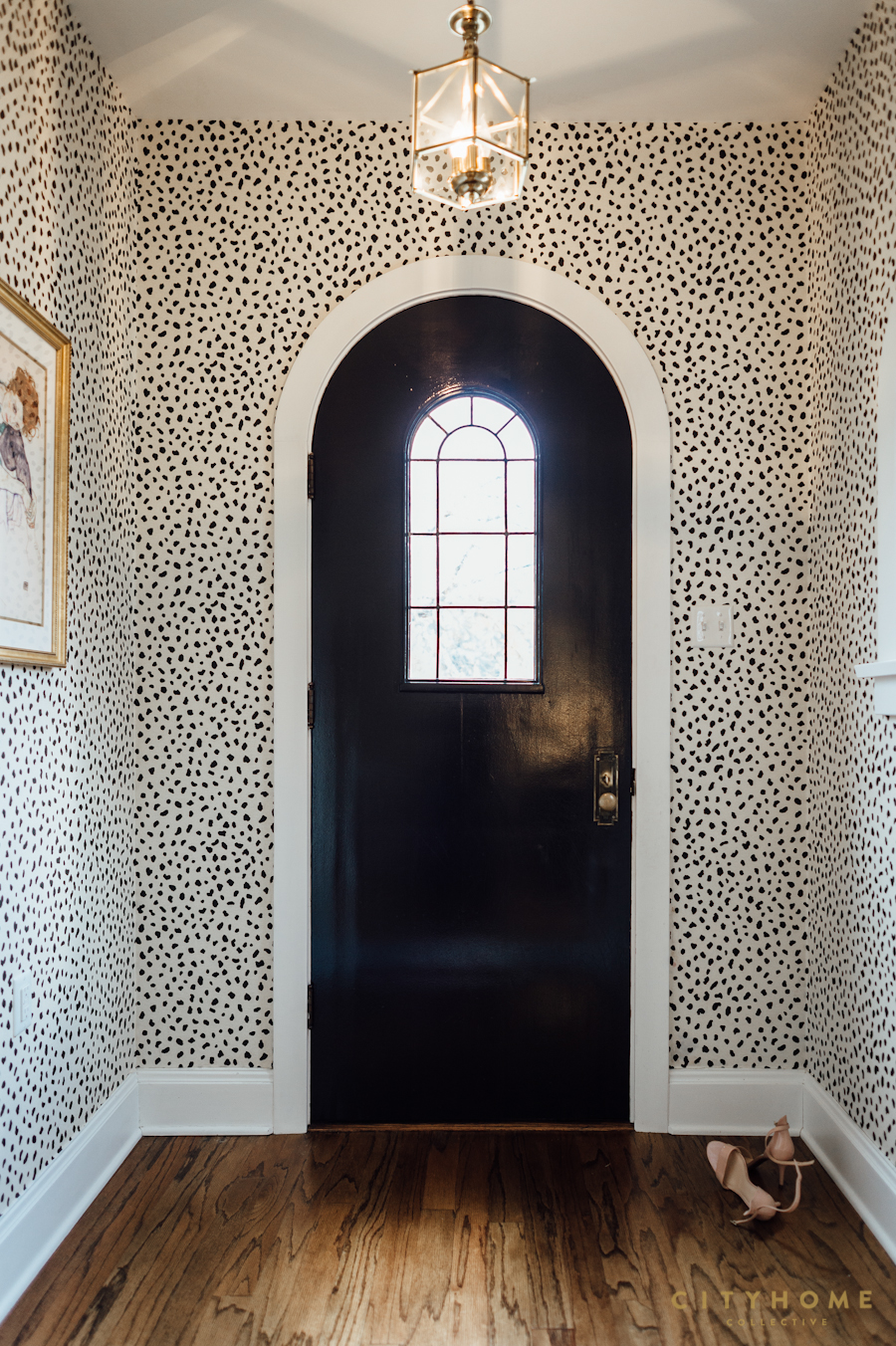 2) Tanzania by Thibaut. Isn't it lovely to look upon a wall covered in such exquisitely-placed dots? The entry of a recent design project we completed, this small bit of the interior isn't so much understated as it is perfectly stated. Says our lead designer on the project, "We were going for whimsy...with style and class." Between the black door, the minimal artwork, and those pink heels, we're feeling easy-breezy-sexy just looking at it. This, dear friends, is the definition of a good first impression. And on your way out, a last one.