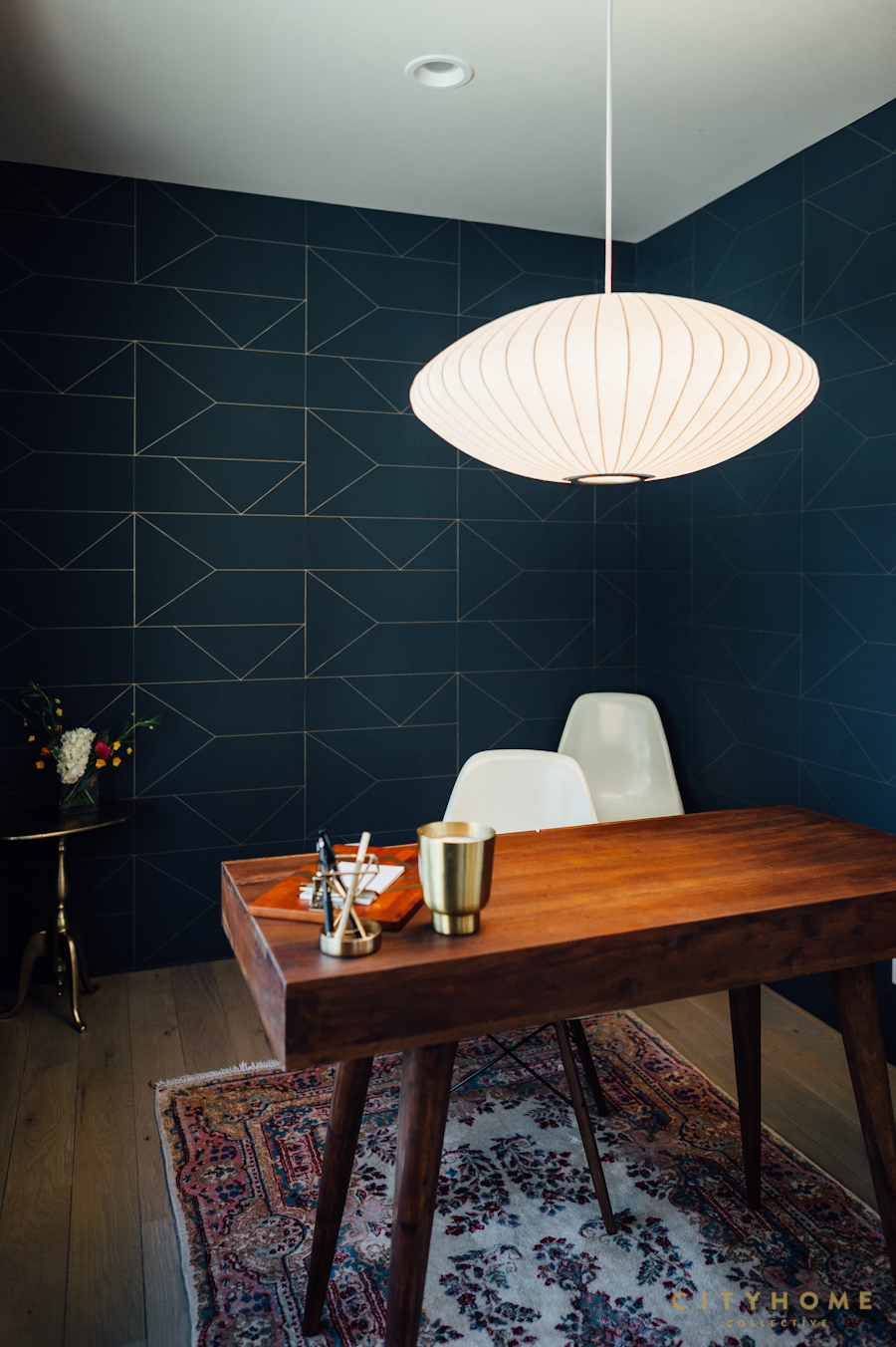 4) Lines (Dark Blue) by Ferm Living. Geometry in its finest form. Another of our recently finished design projects, this office is small but striking, thanks to the wallpaper. Between the deep, delicious blue and thin lines of metallic gold, we're squarely smitten (math jokes). What's more, we decided to open up and separate said office from the main living space with glass walls...so the view can be taken in from the couch or kitchen. There's something to be said for transparent design.