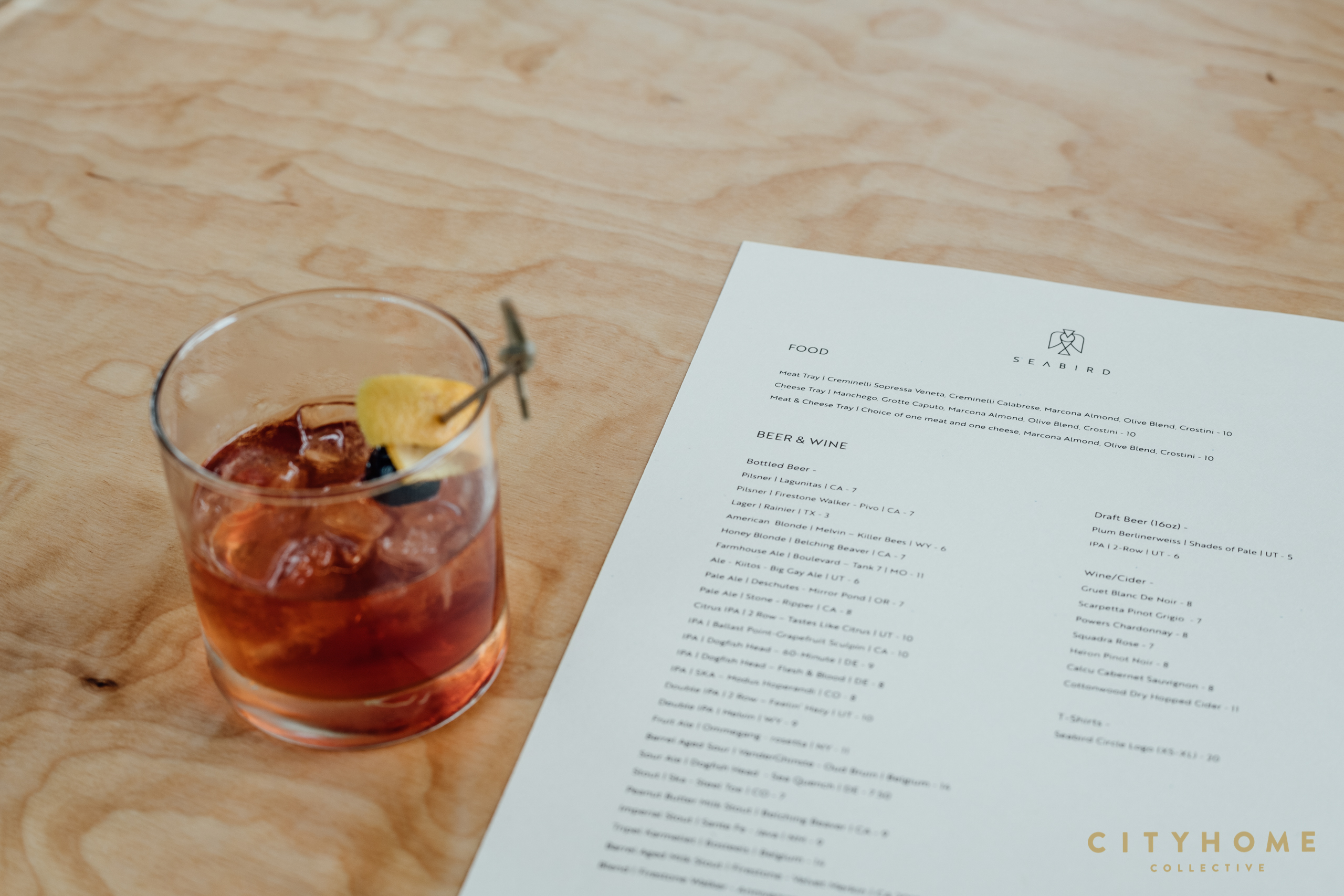 To sum up the Seabird experience in one word: clever. Billed as a cocktail and vinyl bar, spending time at Seabird is a sensory feast for the ears, eyes, and taste buds. The drinks? A tight selection of craft beers, top-notch (yet unfussy) cocktails, and a thoughtful smattering of no-ABV’s like Fentimans craft sodas, full-strength Mexican Coke or savory, zero-carb, Lagunitas hoppy refresher. The small but mighty-tasty snack menu trends toward perfect bar bites of almonds, olives, local charcuterie, crostini, and cheeses. Even the charming geometric logo is a spin on the owners’ love of old school vinyl, with the beak of the stylized gull reminiscent of a record player’s needle. Clever, indeed...