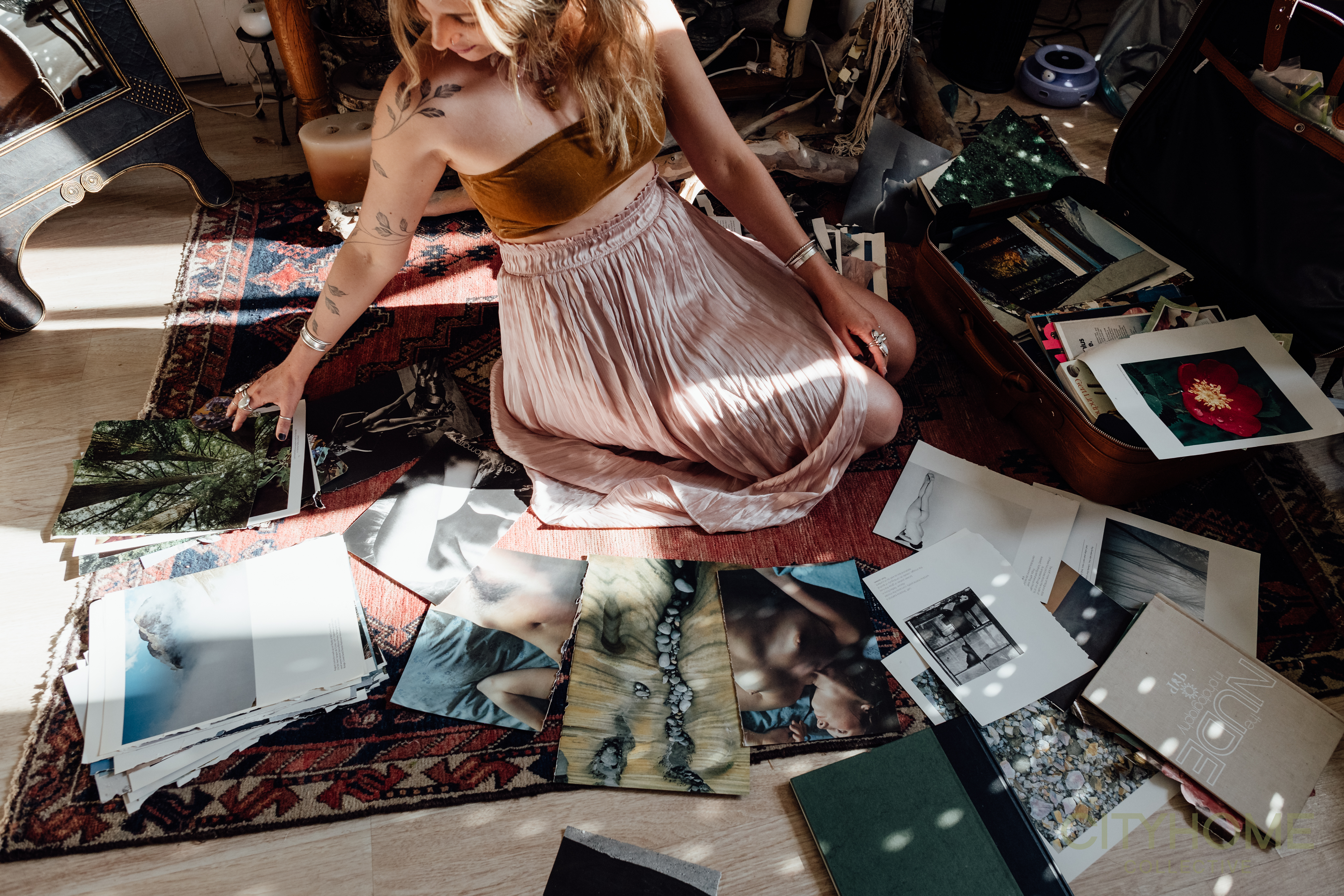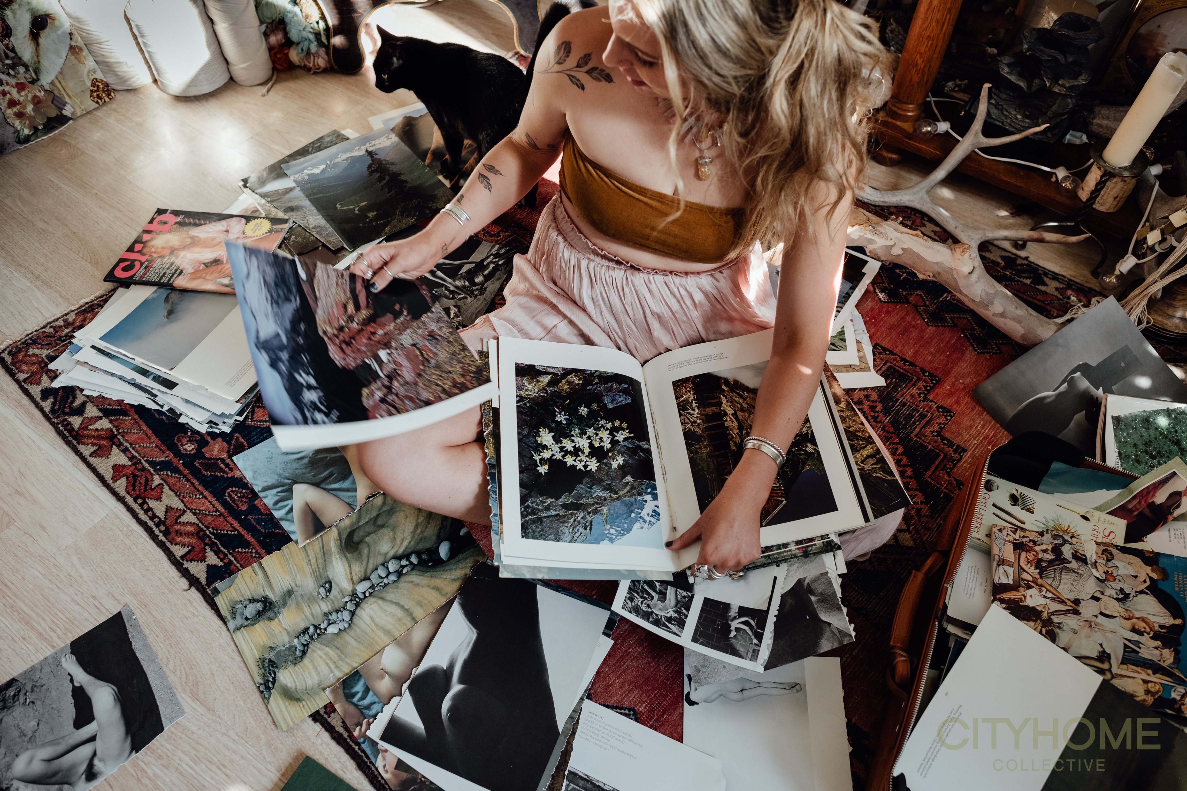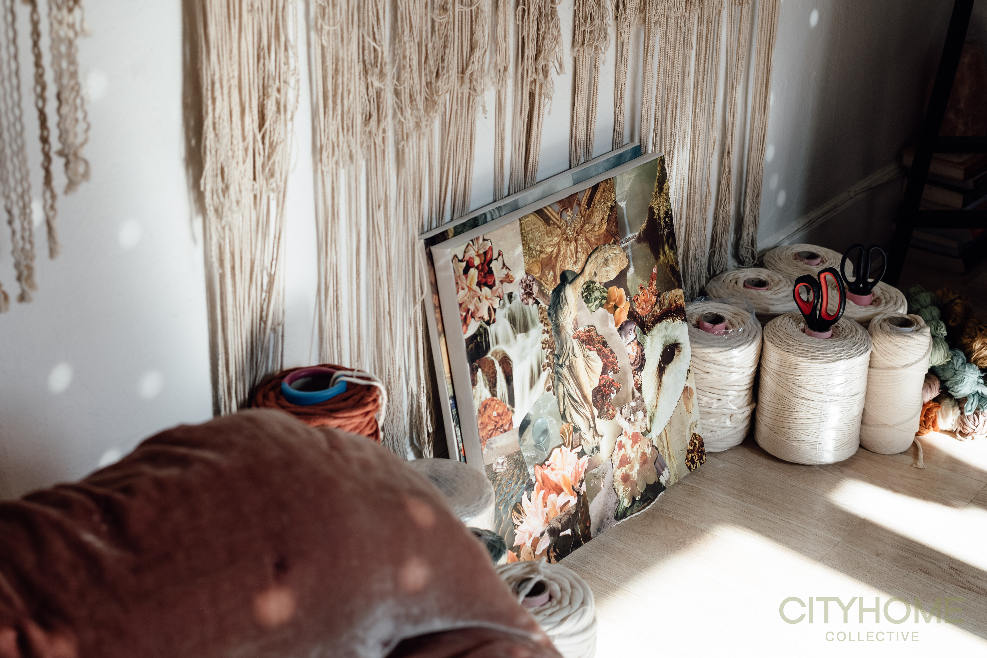 Shelby converted her backroom into her studio space where she’s been transmuting those fore spoken ashes into various forms of art.