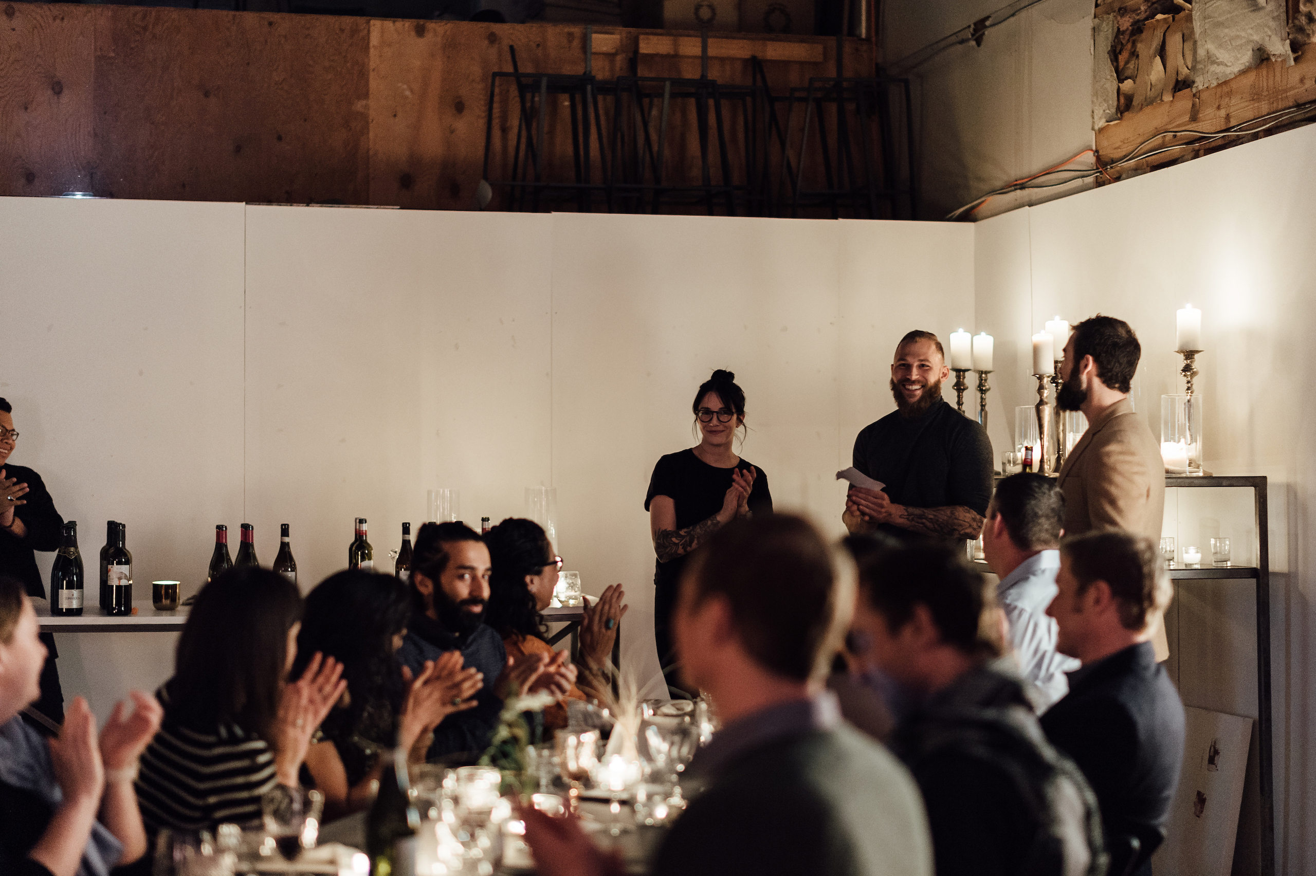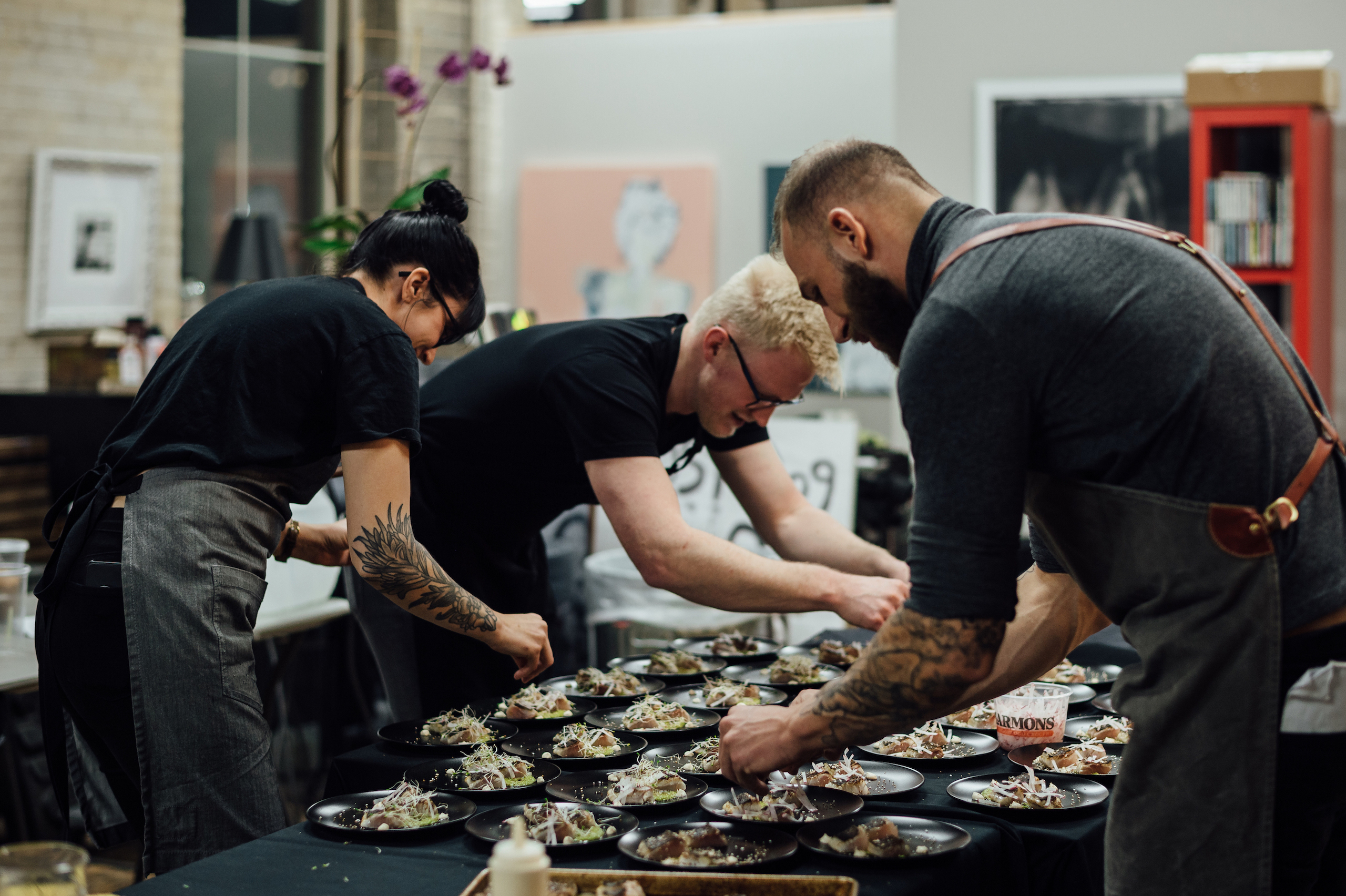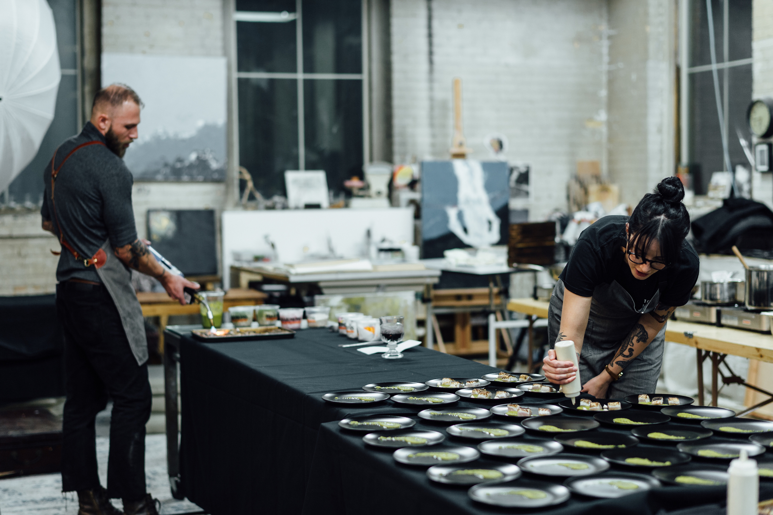 How do you pick the menu/wine/location for each one? The idea behind the food is originality...we want our personal cooking styles to come through in each course. We always approach a menu asking the question, “How can we create a truly unique experience for our guests?" We try to keep the menu as seasonal as possible, using as many local ingredients as we can. Once we’ve established the food for the evening, we sit down with our wine gurus, Ty and Brian, to go over pairings. And obviously, it doesn’t end there--the venue and design really help to add to the entire experience. We try to find locations that people may not have ever been to and that allow us to play with the space a bit. For instance, Jenevieve Hubbard of Beehive Floral put together the most recent floral installation that really took the space to the next level. Seeing that transform is one of our favorite parts of these events.