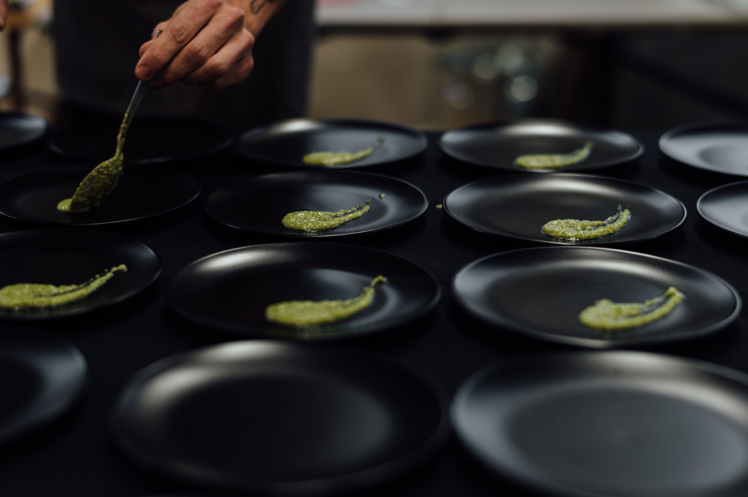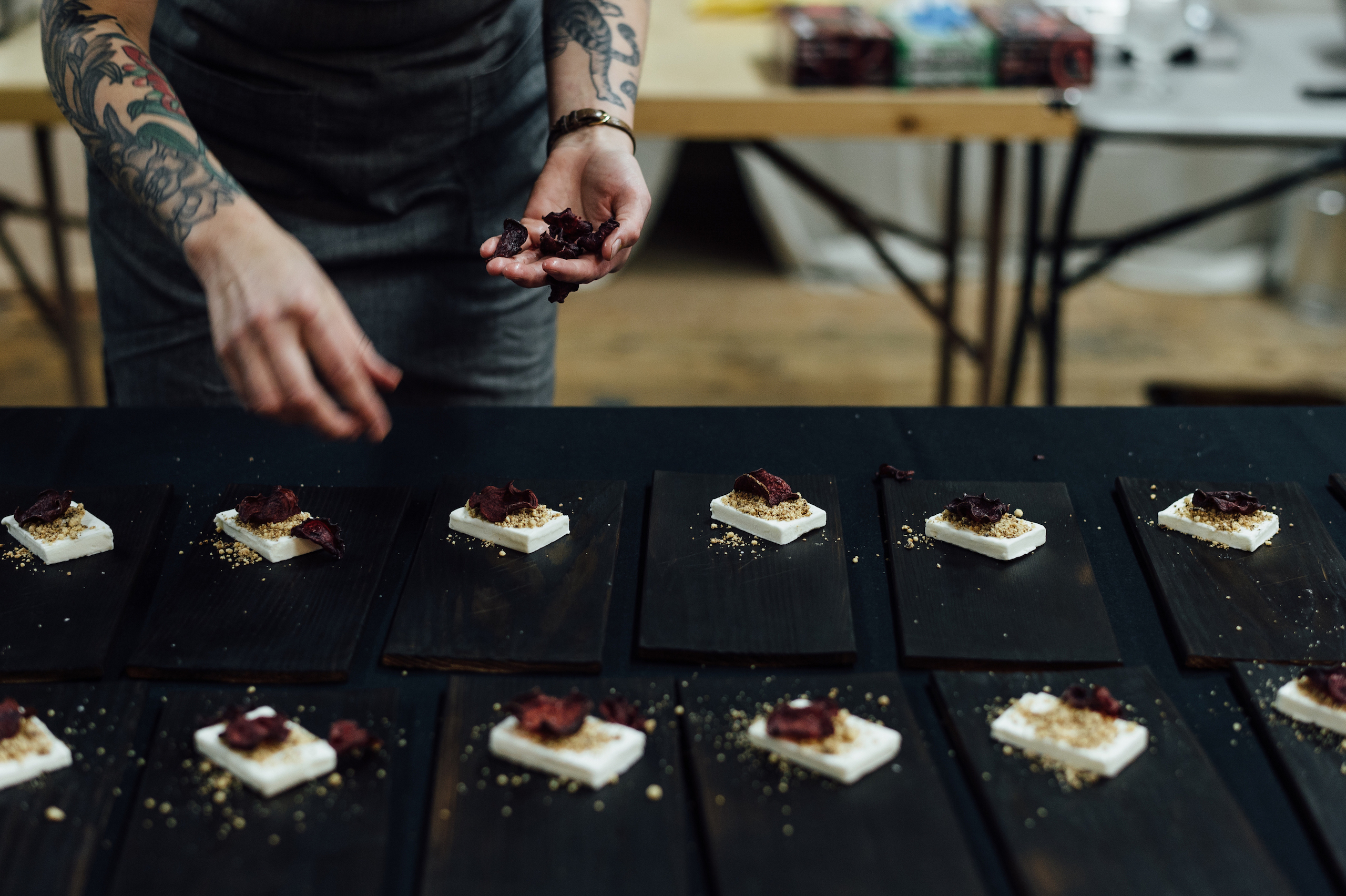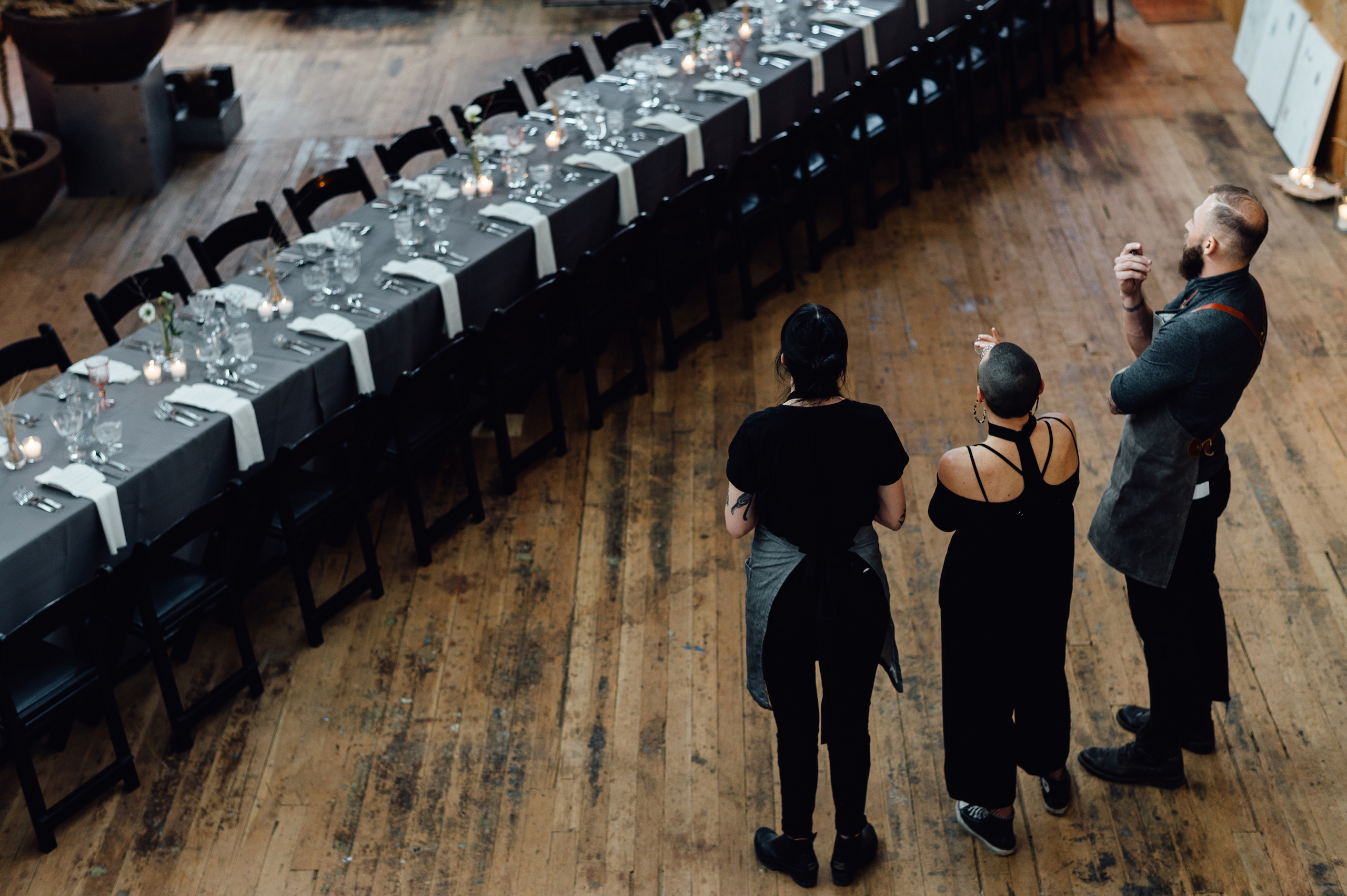 How do you pick the menu/wine/location for each one? The idea behind the food is originality...we want our personal cooking styles to come through in each course. We always approach a menu asking the question, “How can we create a truly unique experience for our guests?" We try to keep the menu as seasonal as possible, using as many local ingredients as we can. Once we’ve established the food for the evening, we sit down with our wine gurus, Ty and Brian, to go over pairings. And obviously, it doesn’t end there--the venue and design really help to add to the entire experience. We try to find locations that people may not have ever been to and that allow us to play with the space a bit. For instance, Jenevieve Hubbard of Beehive Floral put together the most recent floral installation that really took the space to the next level. Seeing that transform is one of our favorite parts of these events.