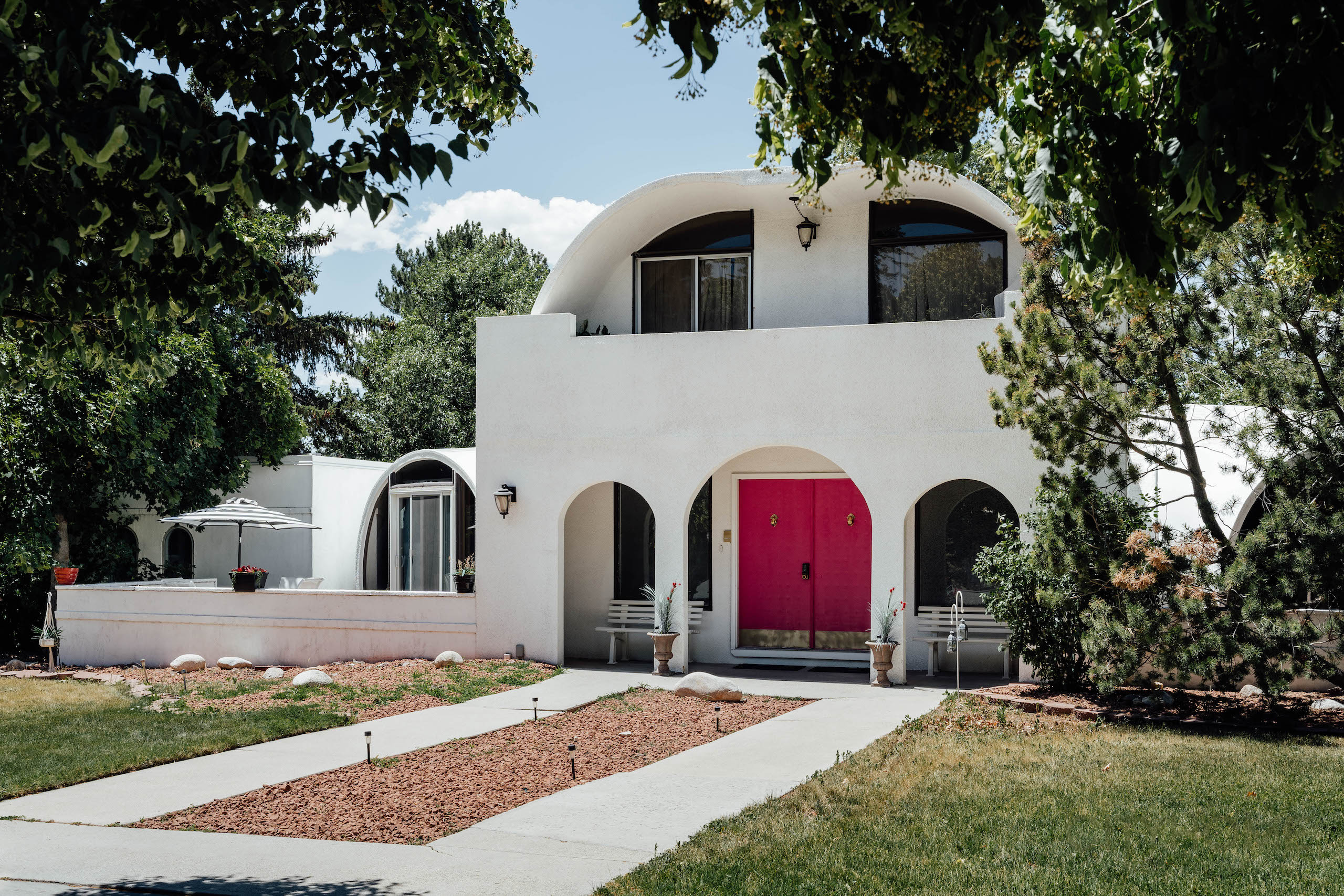 The house was built in 1973 and was designed by a local sculptor Mont Crosland. It is made up of multiple fiberglass domes with a traditional basement foundation. It has 6 bedrooms, 3.5 baths, and is approximately 3600 sq. ft. It is highly energy efficient and the house breathes in the hot and cold climate. All the seams are flexible and allow for this. Everyone in this neighborhood calls it the igloo house, but I always thought it resembled something from Star Wars on Tatooine.