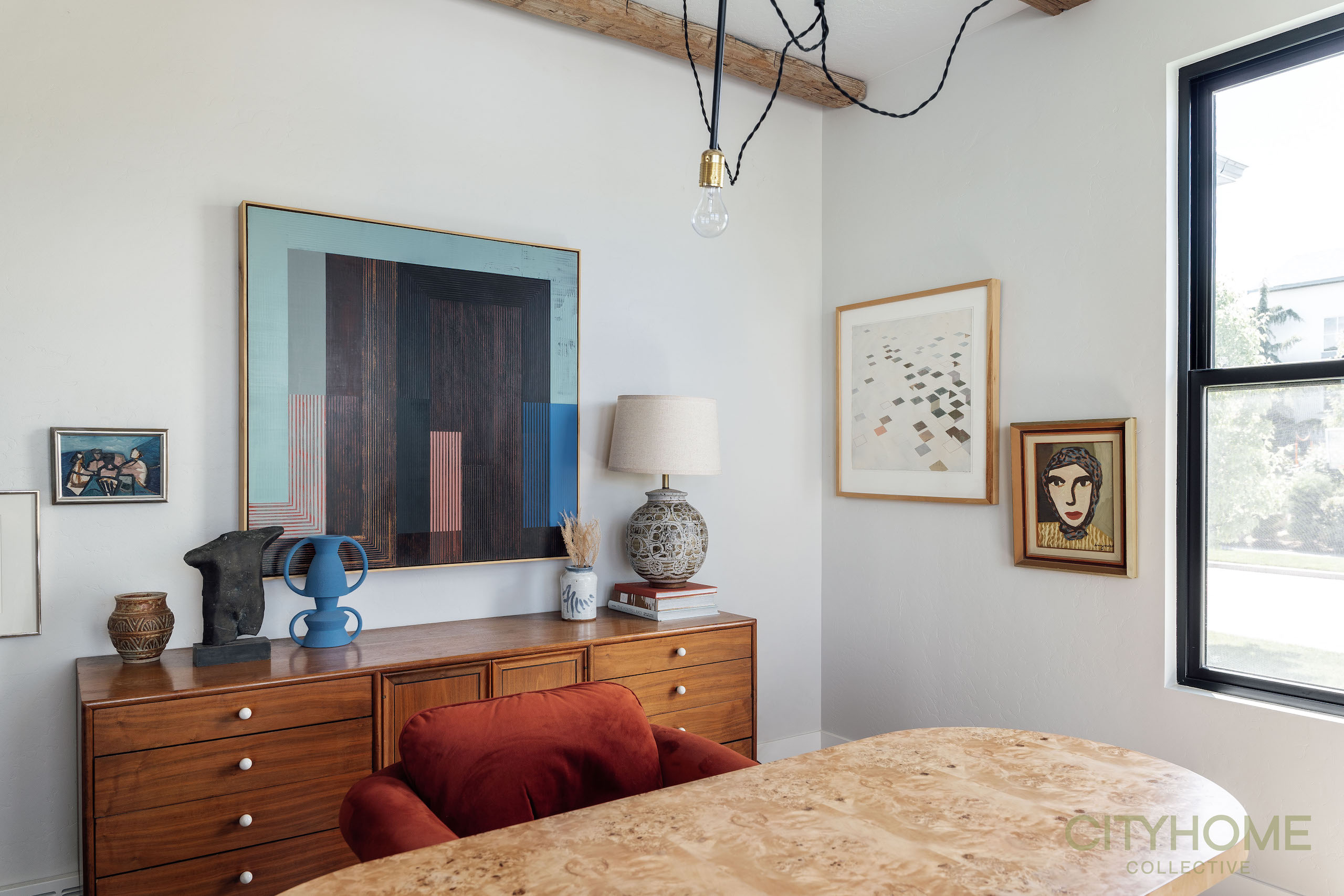 Absolutely, there are a couple local contemporary artists that I love, including Sunny Belliston Taylor and Meggan Waltman. I purchased several pieces from Sunny about 8 years ago, I’ve yet to purchase one of Meggan’s pieces but she’s always on my radar. I own several abstract Karina Bania pieces, and if you are drawn to textile art, I adore the work of Rhiannon Griego. I’ve struggled to find a lot of vintage artwork that is non realistic, so I often look to contemporary artists for abstract pieces to juxtapose my personal vintage collection.
