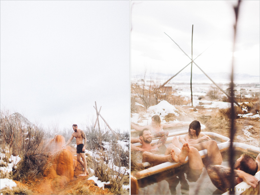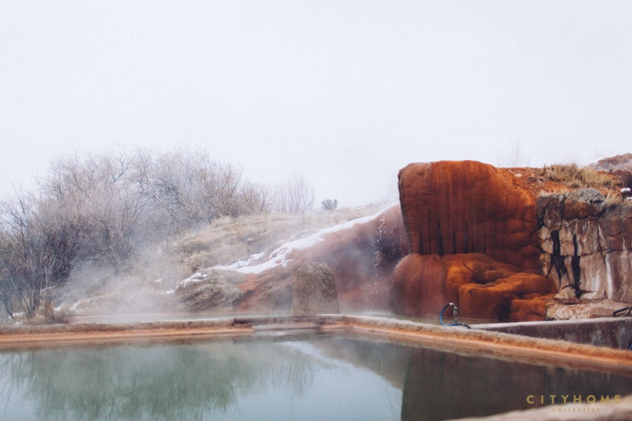 There’s a bit of a “bathing” theme on our website as of late, and that’s got everything to do with the fact that we’re basically shivering 24 hours a day. What we lacked in official winter weather last year, we’re more than making up for now. In fact, we love it. More snow is in order, and we’ll take whatever Mother Nature’s looking to dish this season. But we’re damn cold in the mean time, so if we can have a little something to do with warming all of us up, then we’re equal to the task. Another perfectly magical way to get toasty these days? Mystic Hot Springs. The drive down is peaceful, the valley beautifully barren, and the reward ever-so-relaxing. Mystic is the ideal spot for a soak, and a veritable time machine to the mid 70s. This is a space where hippie sensibilities are fully intact and modern conveniences, not so much. You go to Mystic for mineral deposits that have all but fully enveloped the claw-foot soaking tubs…not for high-end amenities. You go for unpolluted views of meteor showers from a 100º, calcium/magnesium/iron-enriched bath. You take it as it is, full stop. And you love it.