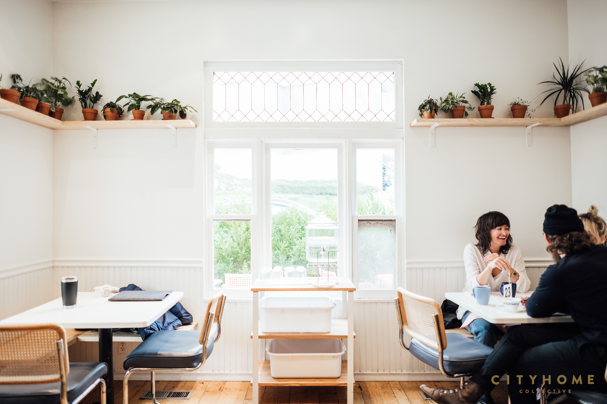 Tell us about this daydream-inducing interior, would you? Elaine: When Em and I were designing the cafe…we wanted it to be light, and colorful, and FUN. I’d love to continue to offer the space for [the art and creative] community to flourish, so if anyone is interested in using the Dayroom space for evening shows…get in touch with me.