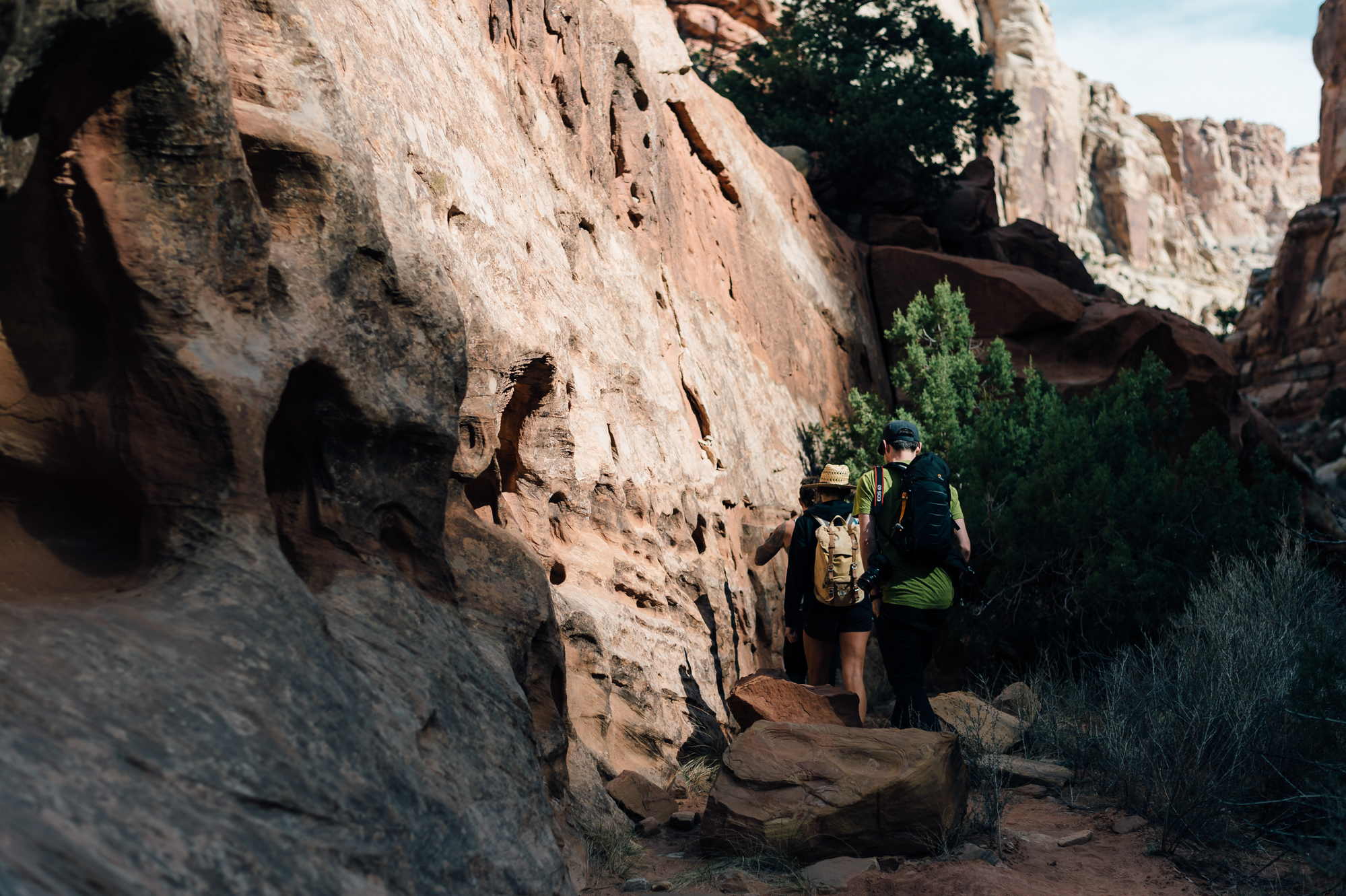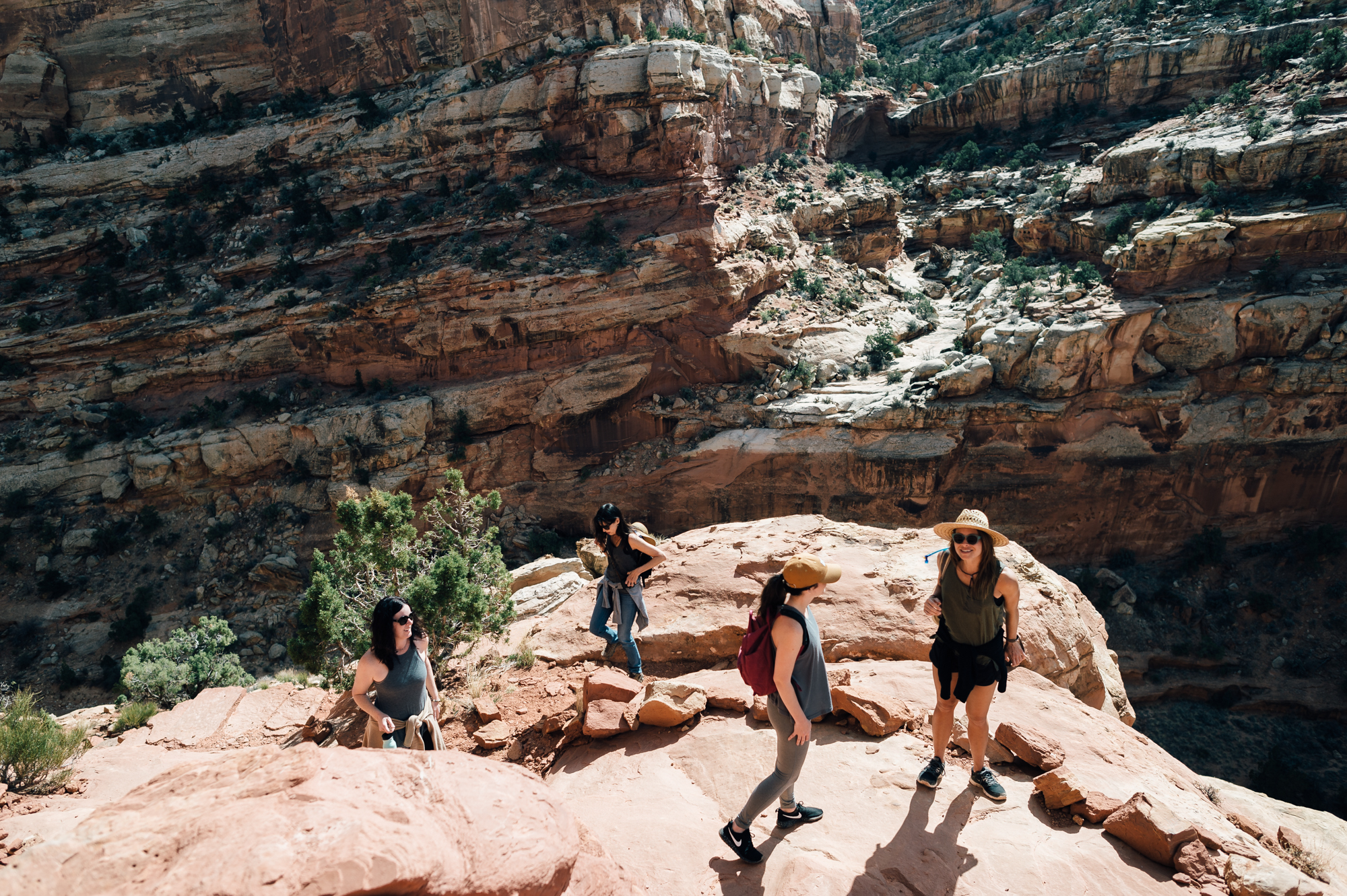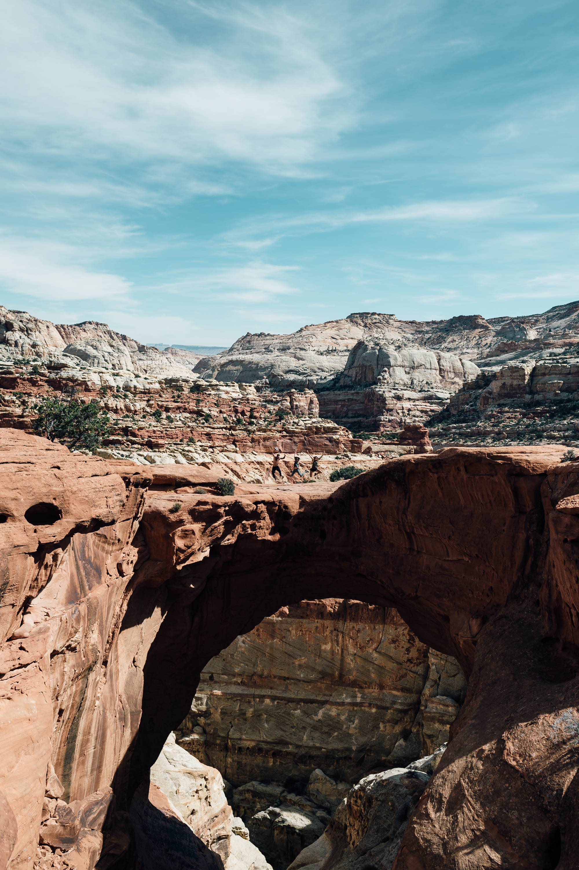Spend Pesos: There are certainly goods to be found in tiny shops (think: handmade rugs, blankets, and the like), but that's probably not why you're here. You're here for Mother Nature. You're here to stand in awe of the endless red rock and sandstone formations. To breathe in that untainted air and listen to the sounds of nearly nothing. That's why we're all here. Capitol Reef is a (literal) wrinkle in the earth that's littered with canyons, crags, and cliffs that will drop your jaw at every turn. Take a hike. For our part, we made our way to Cassidy Arch. Relatively easy (in fact, it can be done barefoot, this one), and stunning, to say the very least. Walk over the arch itself (a little unnerving, what with the wee drop from each side) or stay on solid ground and take photos while your pals take all the risk. Either way, look around. You came to the right place.