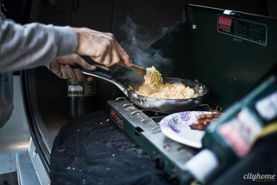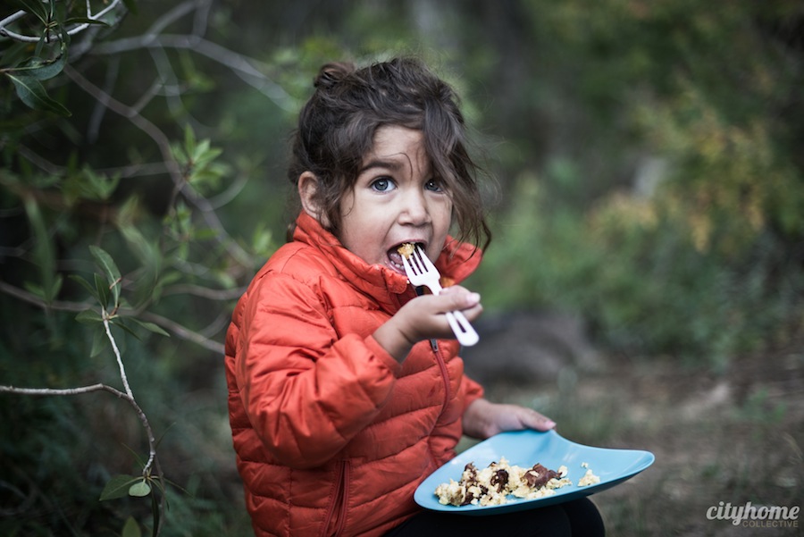 Eat Out: Your dad’s old Coleman stove, a dozen eggs, and bacon. Bam–breakfast is served. Most likely, you’ll be too busy clinging to an overhung V5 and wondering if that crash pad is really going to break your fall to worry about lunches. But if you must eat, Trader Joe’s has enough nut ‘n’ dried fruit combinations to back you up for days. For supper, start a fire, broil some fish with lemon and rosemary, or just roast a few weenies. Either way, be sure to put a smile on your kiddos’ weary mugs by wrapping up the day with a round of sticky, gooey, that-marshmallow-is-straight-up-on-fire s’mores.