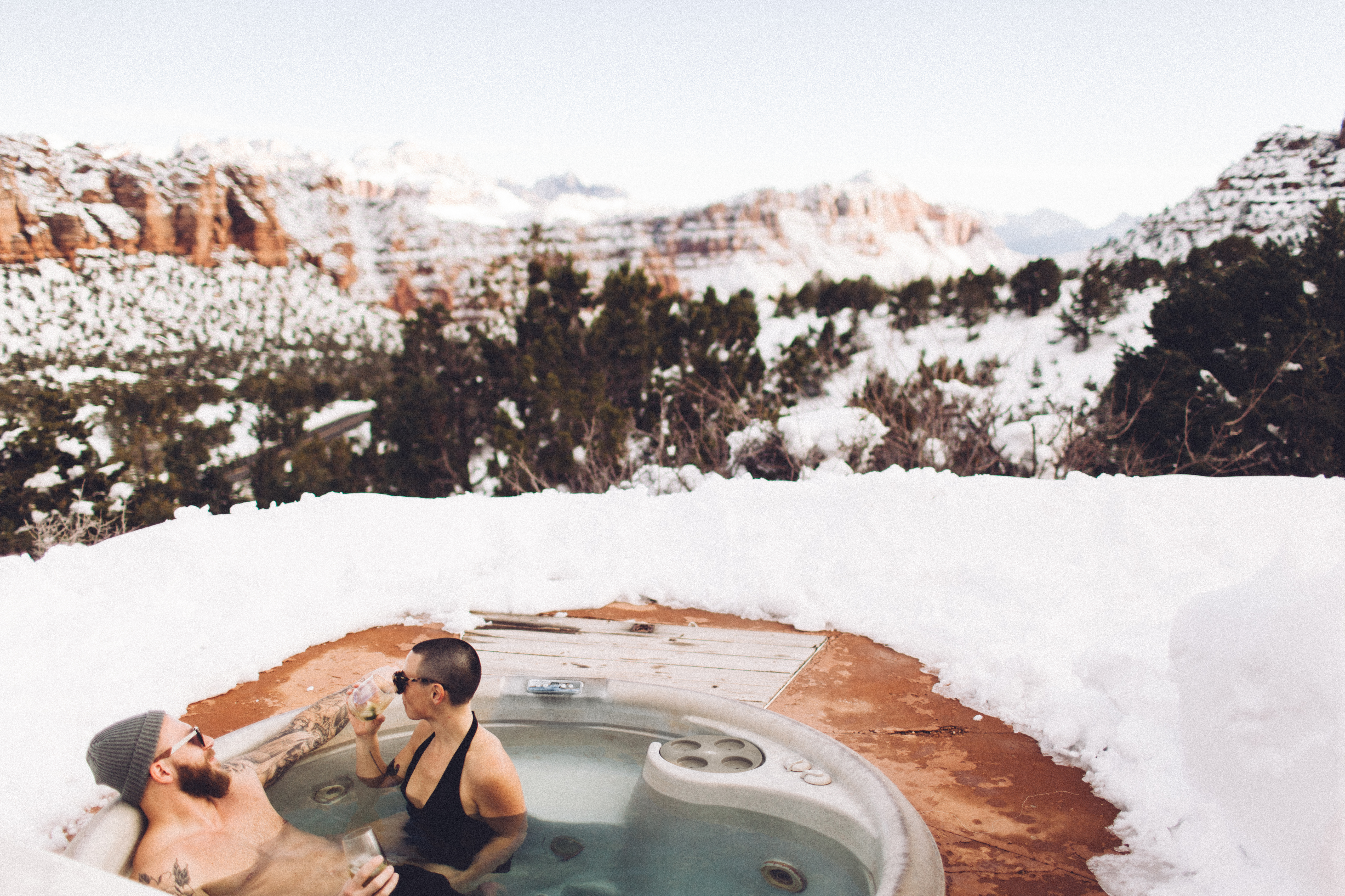 Check In: Zion Villa’s “True North”, Virgin, UT — The numerous small towns within a skip of the park host all sorts of hotels, motels, and Holiday Inns. If solitude is your thing, a quick Airbnb search will deliver any number of cabins, villas, and hideaways to suit your taste. Our vibe was mountain cabin meets yoga retreat. Amenities included roaring fireplace, laughter, and hot tub with a [hot damn] view.