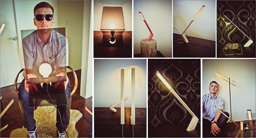I was impressed with Tyler's work; so much so, that I decided to do a photo shoot...with a broken back. He came over, lights in tow. They're a practice in perfect balance. He's nailed it with so many of his creations. In his own opinion, his line is like the Muppets; each design has its own personality, but they work really well with one another. I strive for original, out-there creations that have the potential to make people re-think design, purpose and beauty, he says. Done, and done, I say. I'm gonna let it shine.