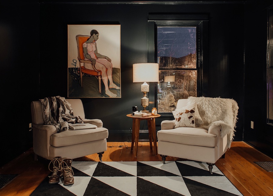 Our COLLECTIVE worship of space is no secret. And since we air said worship with such frequent public declarations, we needn’t bore you with the details of our multi-faceted love of design or the contentment we find in creating those spaces that so perfectly suit the people inside. Instead, today we wish to convey a particularly zoomed focus for those spaces that find a way to “throw shade” in the most magnificent of ways. A well-curated, dark space can elevate our disposition and weaken our knees. We offer praise to the lighter side of design, too–Scandinavian, clean, sunny scenes certainly warrant devotion–but these wintery days make us want to relish in the opposite. The soft, yellow glow of a heavily dimmed bulb and the flickering fire of dripping candles and their fast-dancing shadows. A cloak of coziness that beckons for melodies of worn vinyl, a favorite spirit poured tall, and a fully-splayed hardback held captivatingly close. It’s an escape from the stir brought on by day, those moody spots.