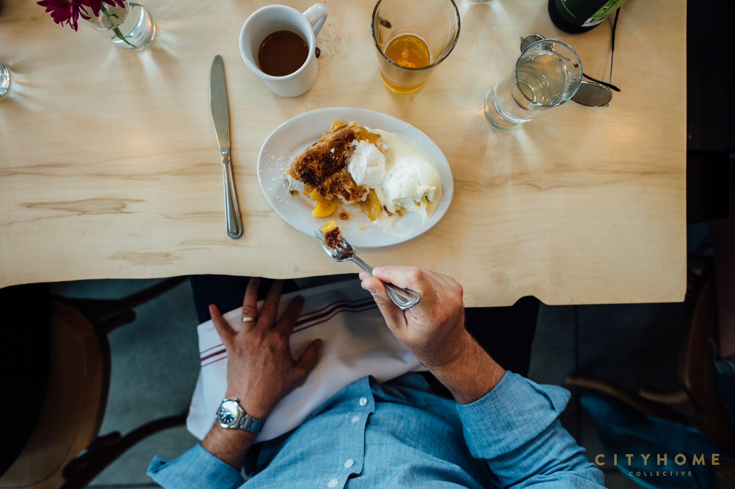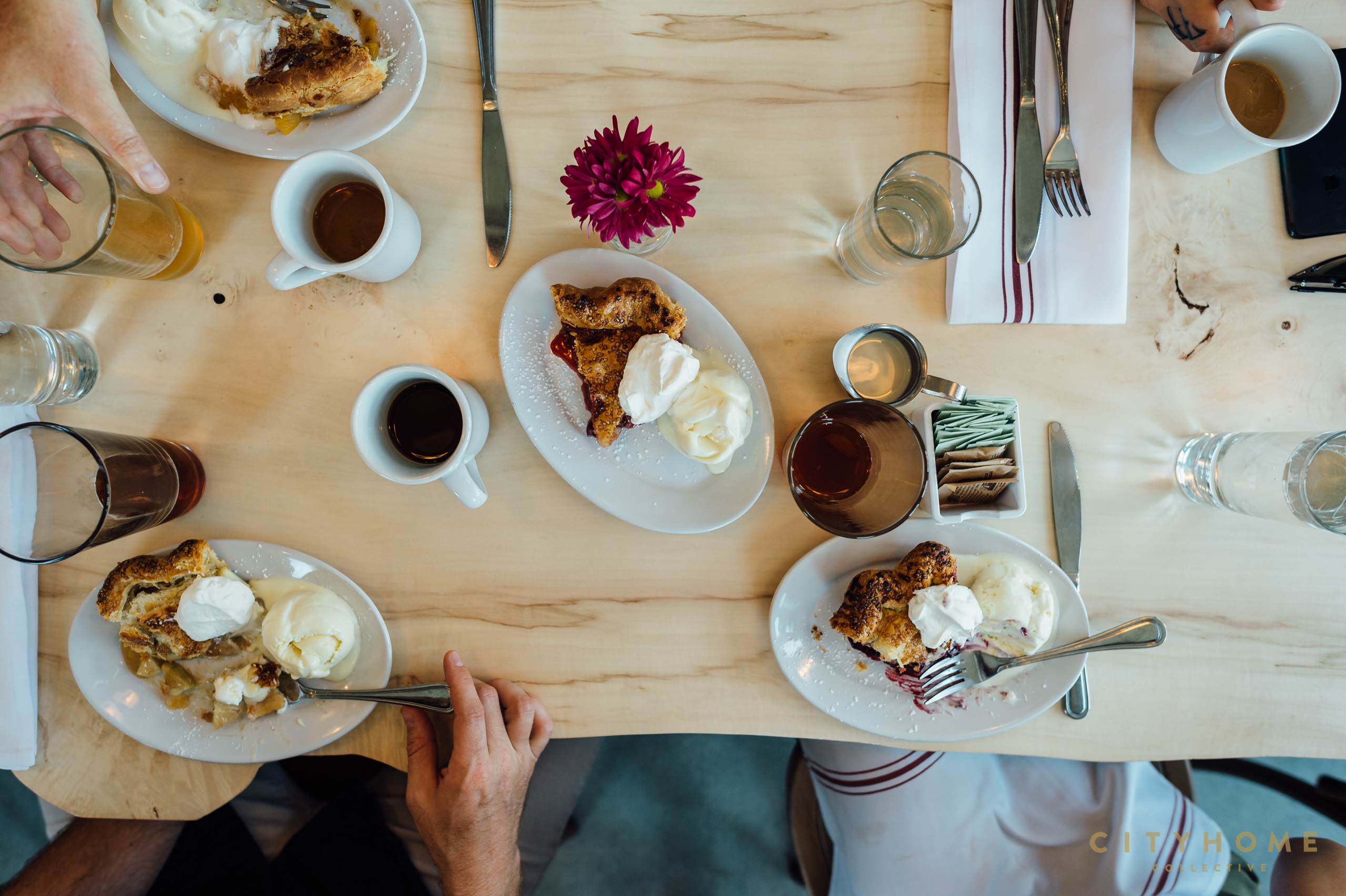 Max is truly a conjurer in the kitchen, and his back-of-house crew whips up such delicious delicacies as chicken and dumplings, a banger of a Reuben, and the crowd-pleasing fried green tomatoes. But what our COLLECTIVE crew ventured in for this day was the pie. Word has it this joint serves a mean slice of the stuff, and in honor of our upcoming second holiday in July*, we decided to stroll on over for some gastronomical research. And research we did. Spiced Cherry. Ginger Berry. And Peach! You seductive number, you stole our hearts. Natalie Hamilton, previously of Finca, runs Tradition’s bar and helped pair our pie selections with local craft beers, and we can COLLECTIVELY attest that her ability to hitch hops to pastry is spot on.