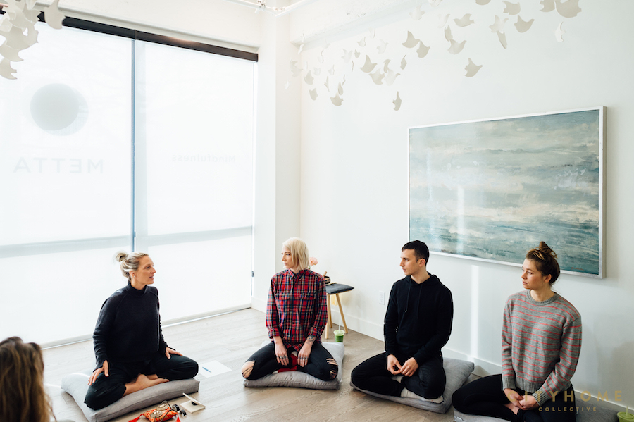 It’s a weekday morning and I find myself seated on comfy, round cushion at Metta Mindfulness + Meditation Center with a group of meditators, both novices and experienced om-ers. We’re sitting in a circle, waiting to be guided by Becca Peters, proprietress of Metta, veteran meditator, and sharer of wisdom. She begins by making us aware of our breath…how we can experience it. Before know it, we’ve spent 15 minutes contemplating nothing more than oxygen intake. There is an immediate calm. The peaceful vibes are tangible.