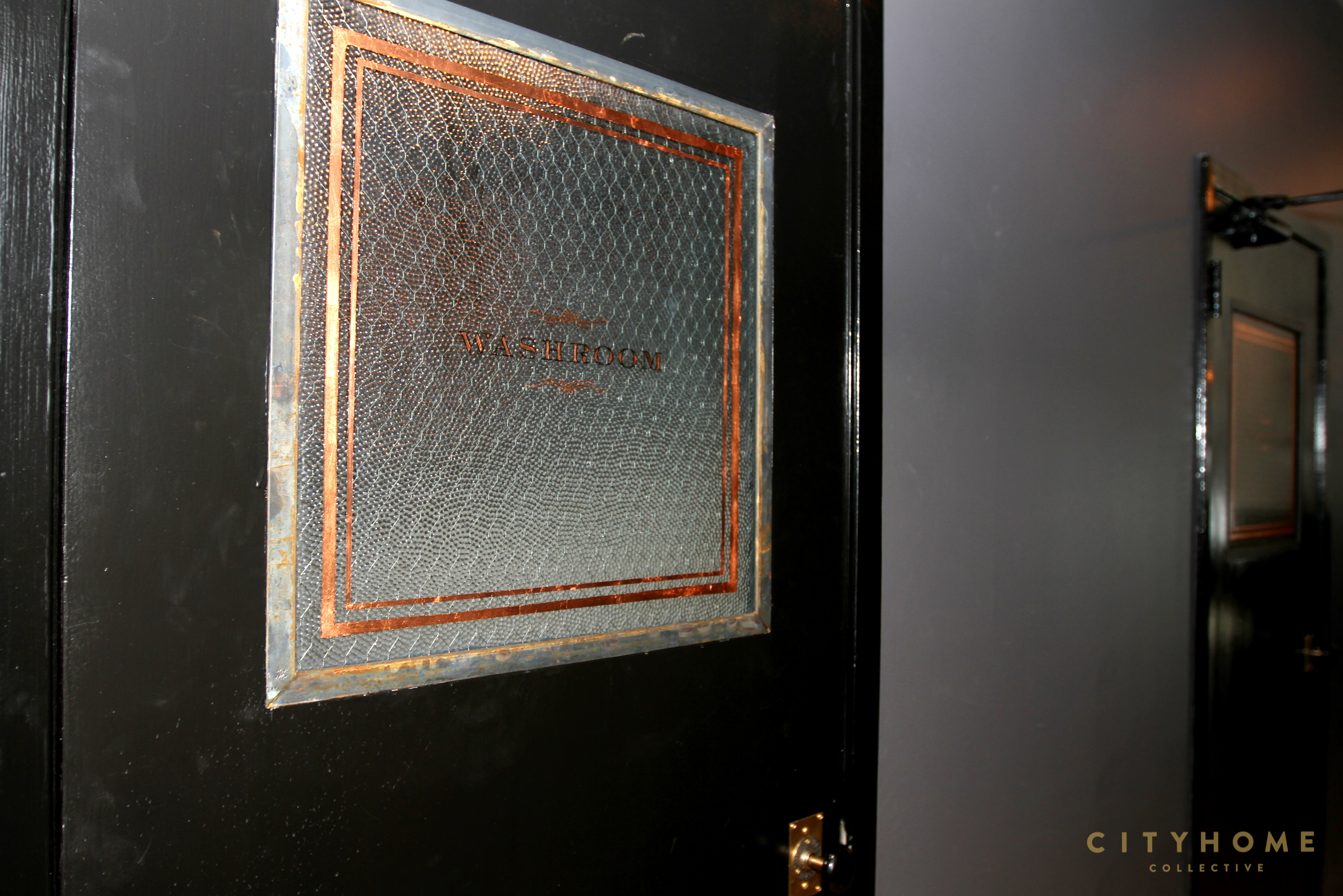 COLLECTIVELY, we're mega fans of dark, moody spaces, but we also know that folks are often a tad gun shy about using black. You employed the dark side on the facade of the building and with the high-gloss ceilings inside. We fucking love it. Was this a no-brainer decision, or did you have to do some convincing to get the go-ahead on that? There was some convincing to do. Using black for color can be counter intuitive, but it doesn’t always read as dark and can really brighten up a space especially when it’s glossy. I love black! It’s elegant and versatile and a little bit of a pain in the ass. You have to get the sheen right to make it work, but when you do it will surprise you. If you go into Copper Common during the day you’ll see that the ceiling reads as white or pale blue because it reflects the natural light. At night it reflects the warmth of the lights in the bar and is very colorful. Painting the window frames black made them disappear and brought the outside in. My fav is the matte finish on the exterior. It wraps itself around you like a blanket and makes you feel enveloped by the the patio. It was a real coup to get the green light on the black facade! (Big shout out to the RDA - who owns the building - for letting us do it.) Suddenly that corner is a place with it’s own identity and not just part of the parking garage.