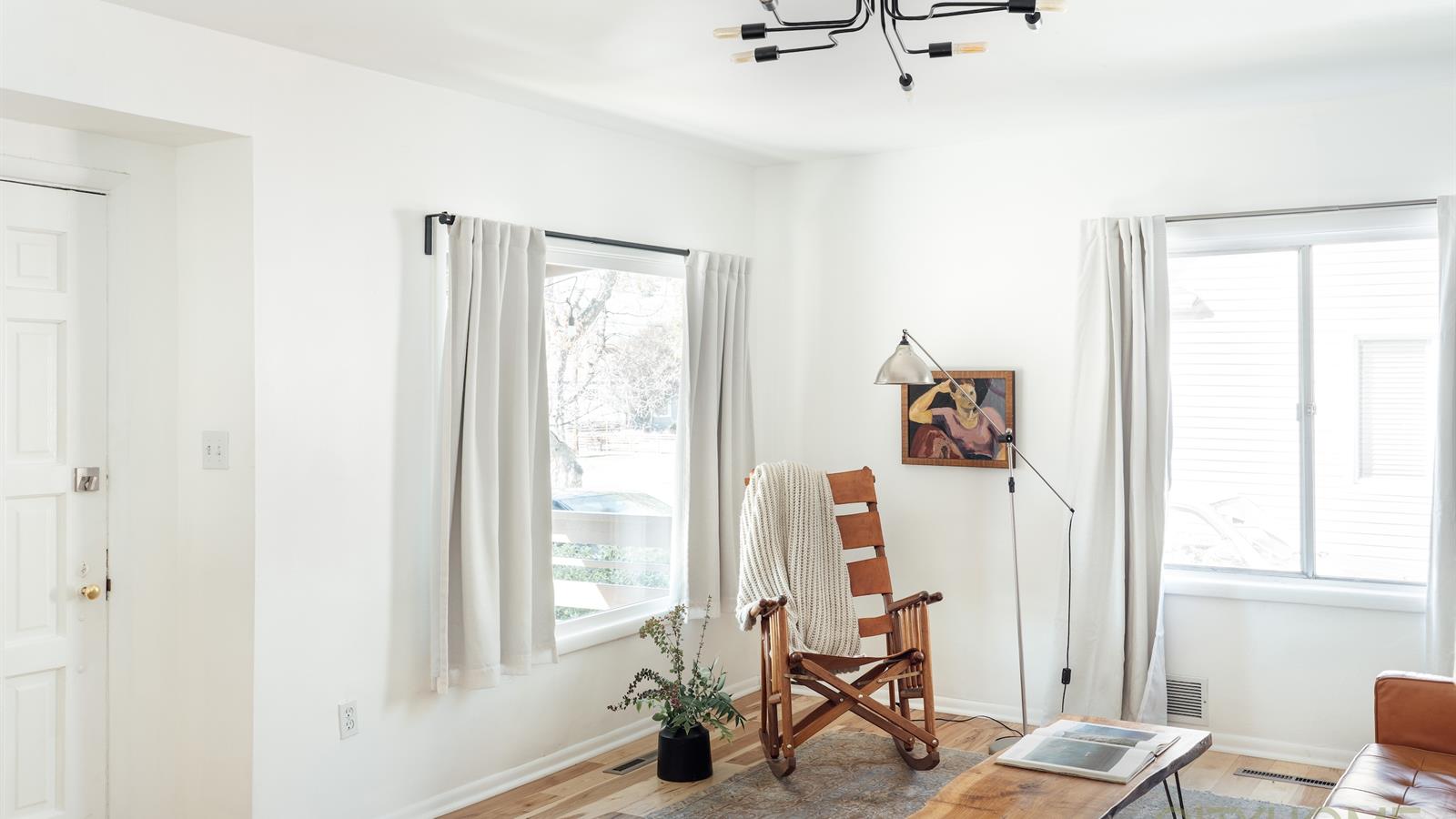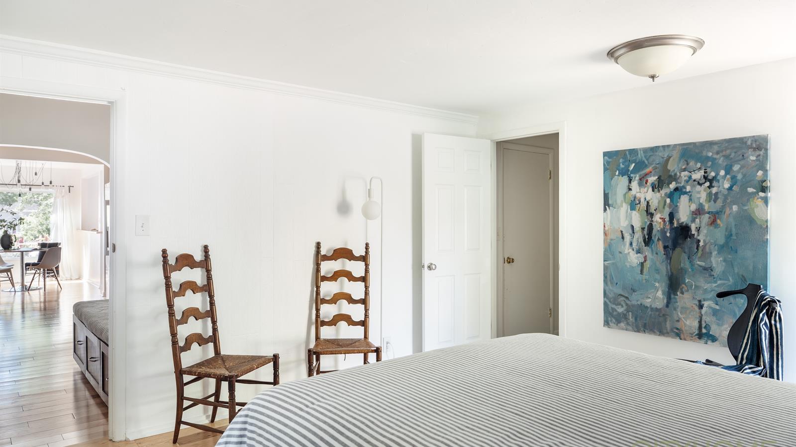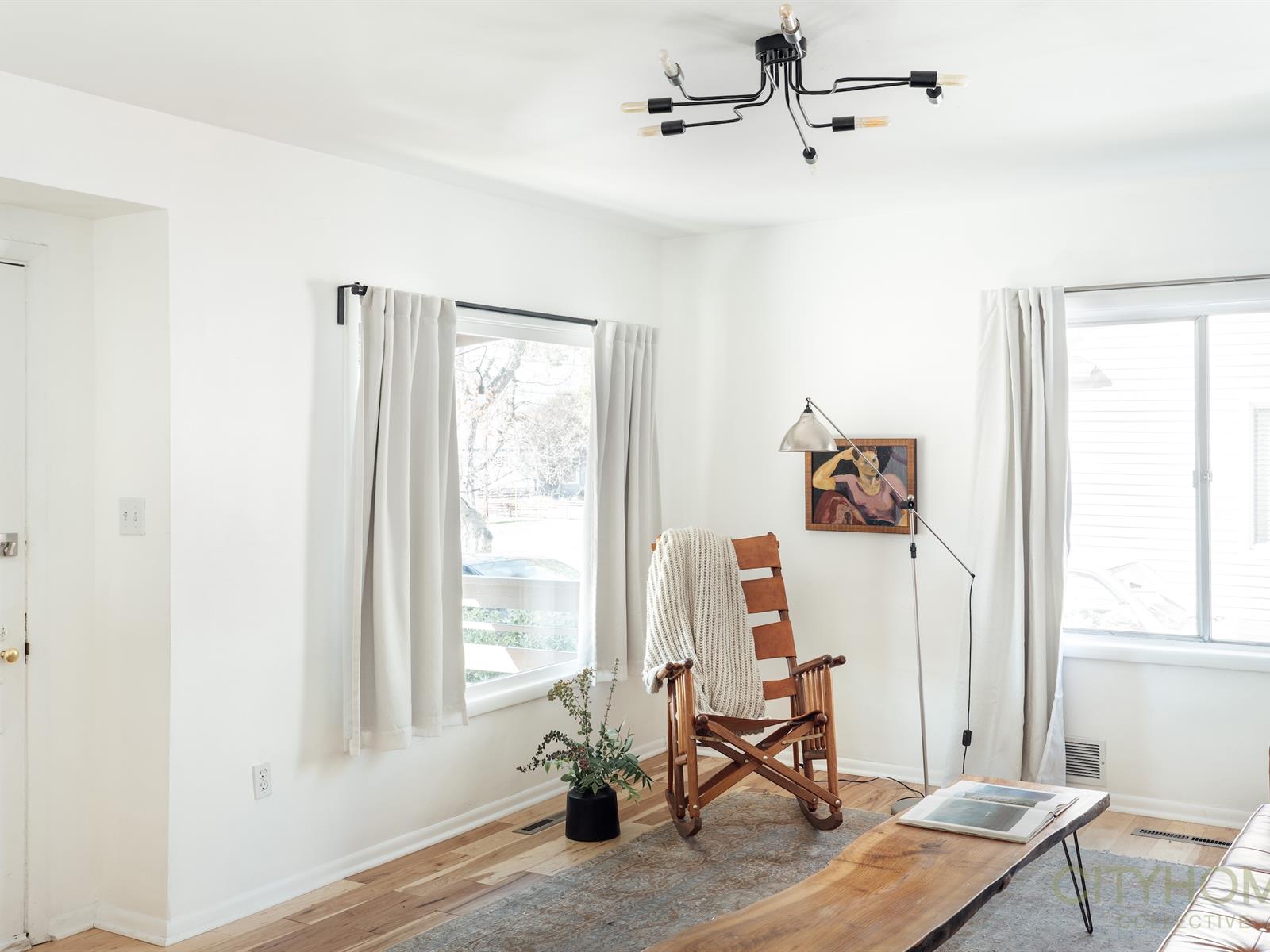 Inside, new hardwood floors extend through bright, open spaces filled with natural light from large front windows.