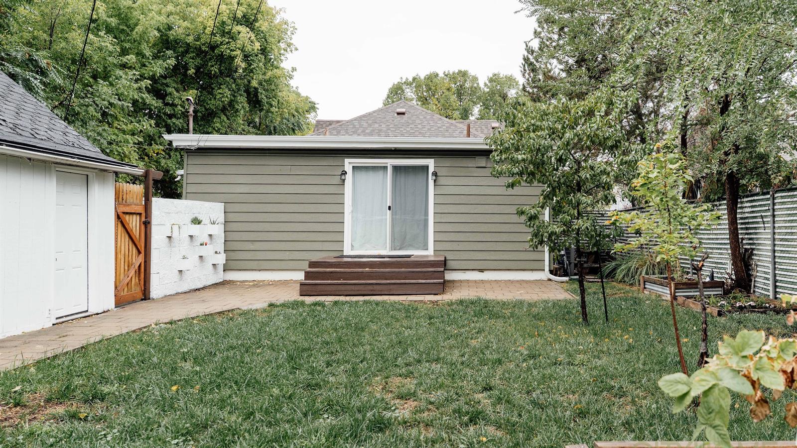 A fully fenced backyard provides room to gather, garden, and play, with flower beds ready for planting, fruit trees to enjoy throughout the season, and herbs and tomatoes already established. A long driveway leads to a spacious two-car garage with extra room for storage, tools, or crafts, ensuring convenience and functionality for everyday use.
