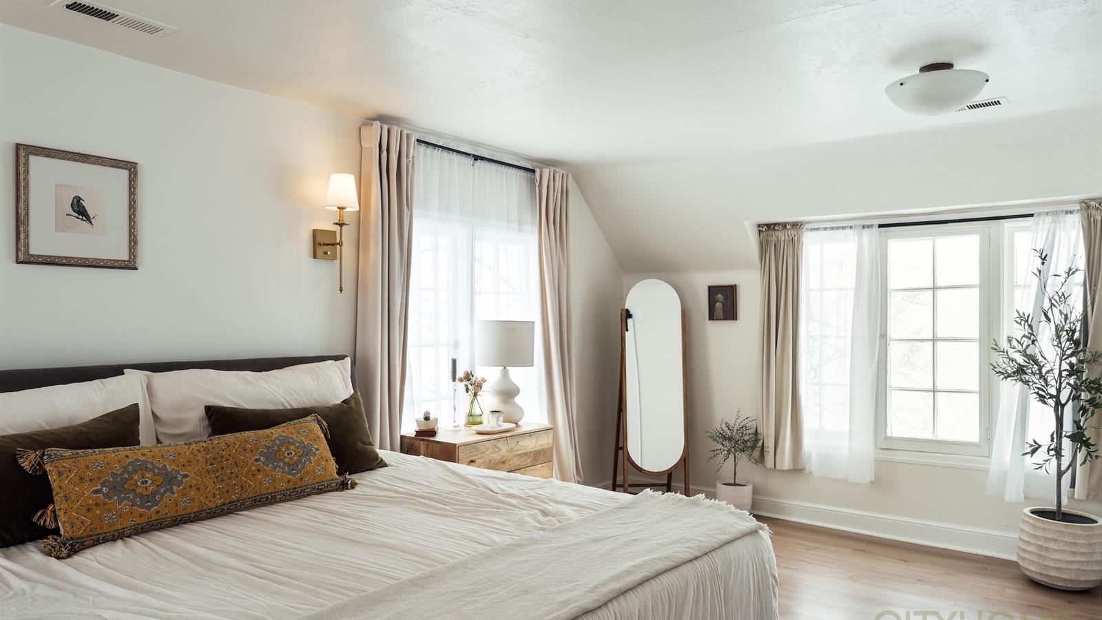 Upstairs, you’ll find three bedrooms and two bathrooms, including a spacious and beautifully reimagined primary suite. Generous in scale and filled with natural light, the primary bedroom offers room to truly unwind. A modern, oversized walk-in closet and a private, updated bathroom create a retreat that feels both serene and luxurious—an uncommon and highly coveted find in a 1920s Tudor.