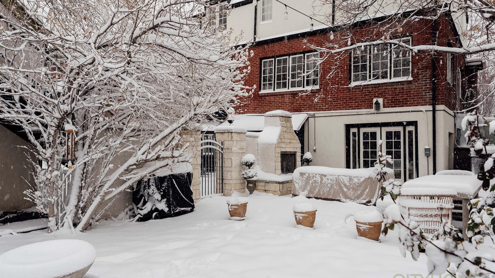 The backyard is large, usable, and beautifully designed—rare for this neighborhood and era. Thoughtfully landscaped, it features an outdoor fireplace for cozy evenings, a charming fountain for ambiance, and plenty of room to dine, garden, gather, or simply exhale. In front, custom uplighting elevates the home’s stately Tudor façade, giving it a warm and welcoming presence after sunset.
