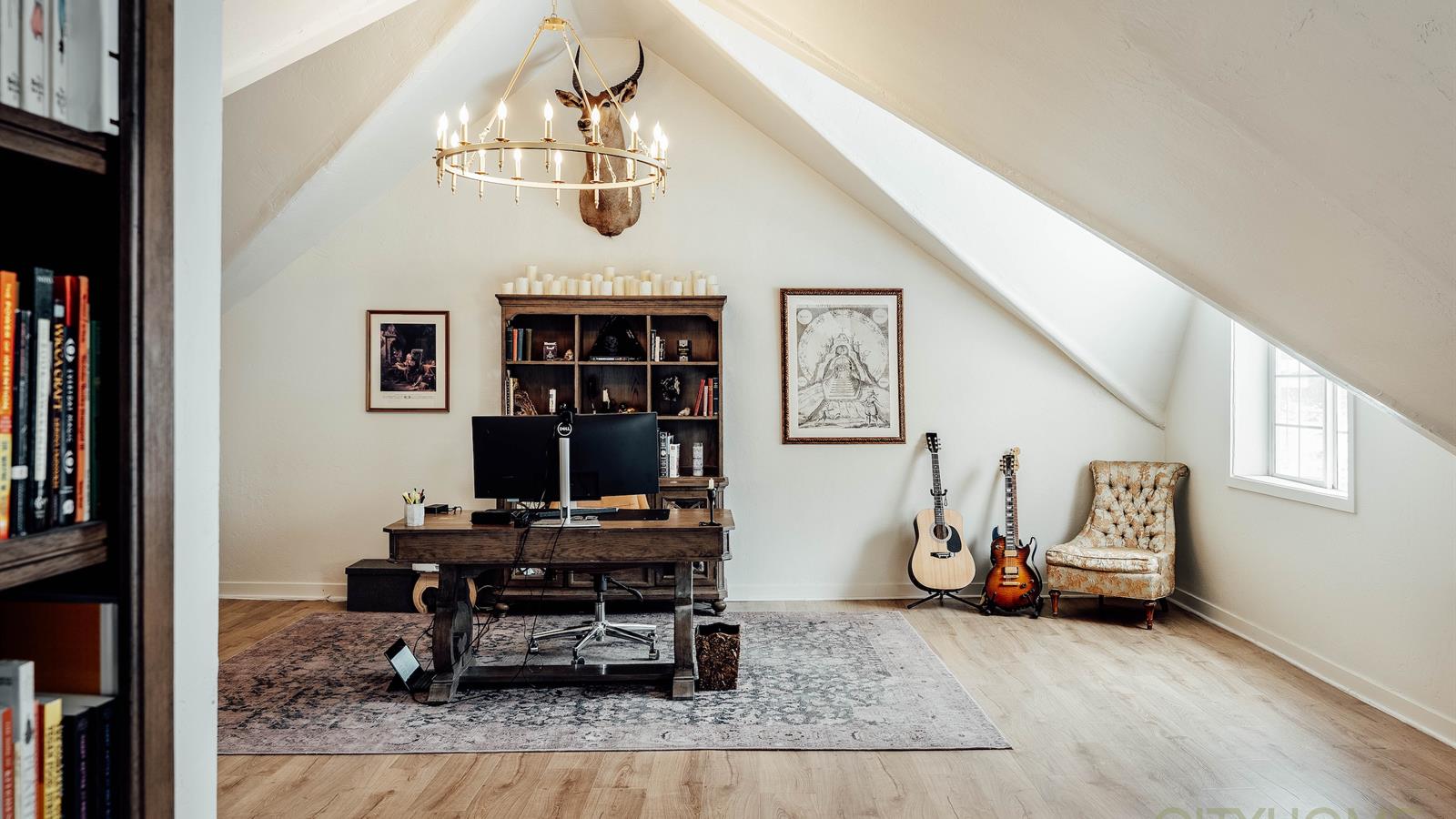 Above it, a stunning vaulted finished space is currently used as a light-filled office but could easily transform into a studio, guest suite, creative retreat, or future ADU. With three bedrooms upstairs, two more in the walkout lower level, and this additional finished space above the garage, the possibilities here are both generous and versatile.