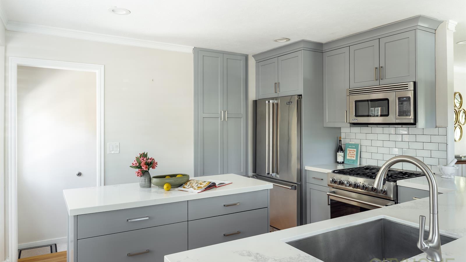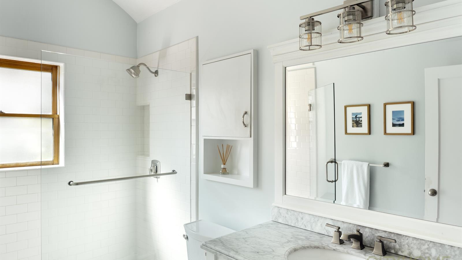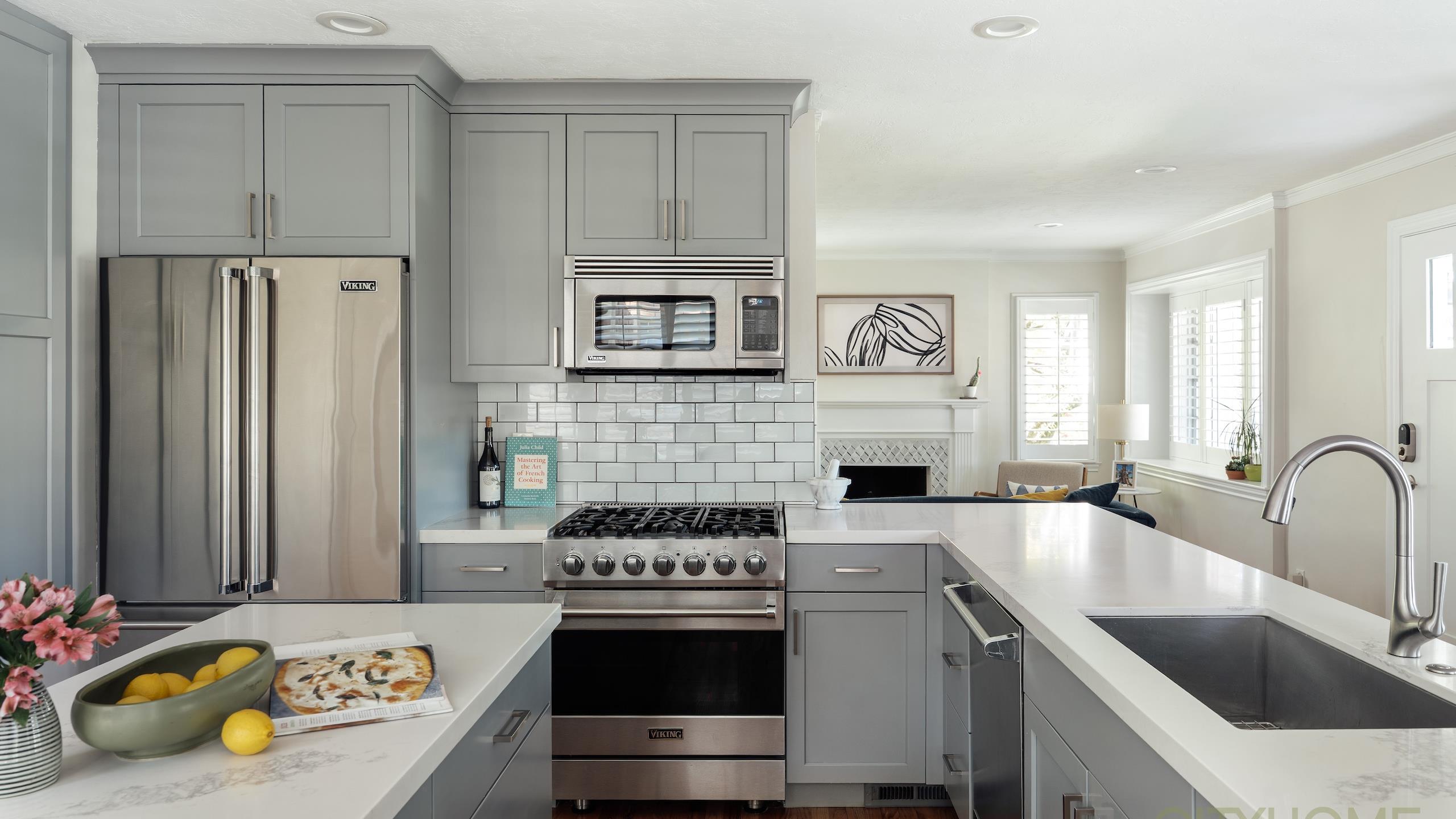 The home's curb appeal delights with classic shake shingles, stately columns, and fresh paint, setting the stage for what's inside. Step through the front door to find a beautifully renovated kitchen with new quartz countertops, custom cabinetry, and high-end appliances—all designed for effortless entertaining.