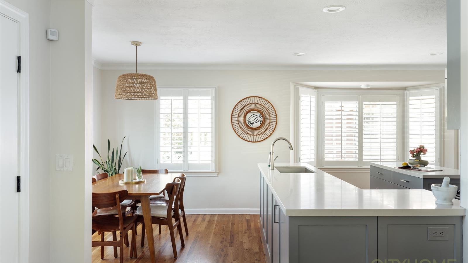 The open layout flows seamlessly through the kitchen, dining, and living areas, where natural light fills every corner.