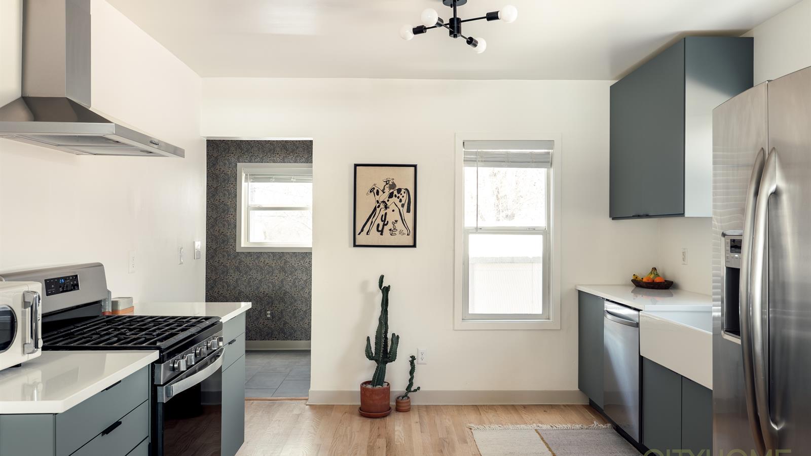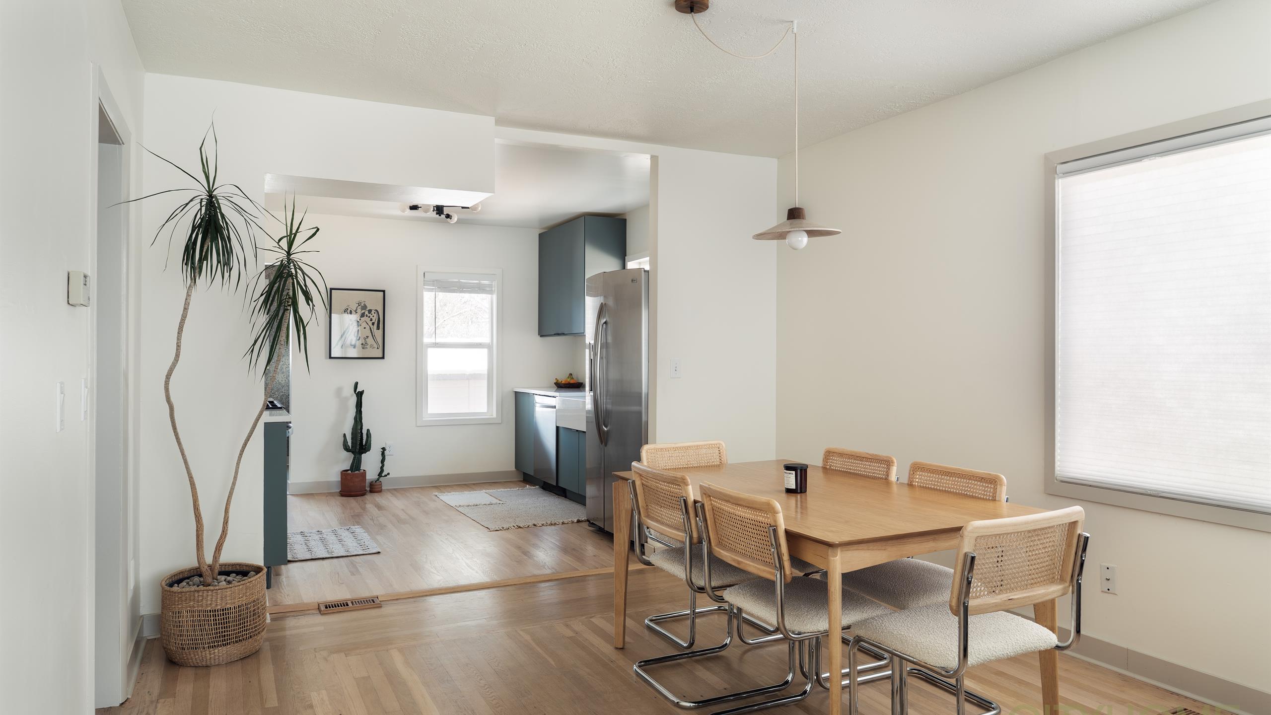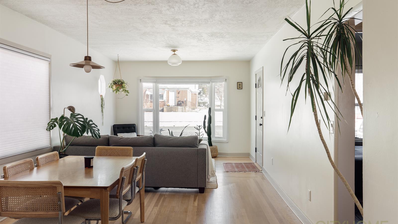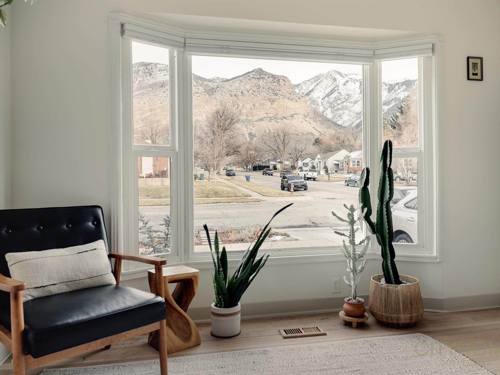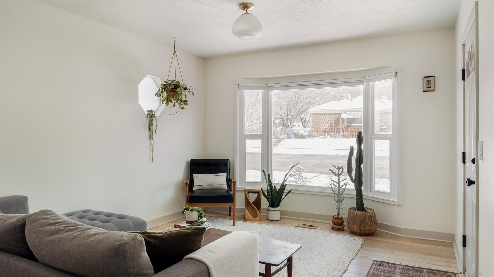 Inside, enjoy spectacular mountain views from your light-filled living room, where the Wasatch peaks are beautifully framed by the home’s front bay windows. Design-forward details characterize the interior, which features a fresh warm paint palette, refinished hardwood floors, modern light fixtures, and an open kitchen that’s been fully updated.