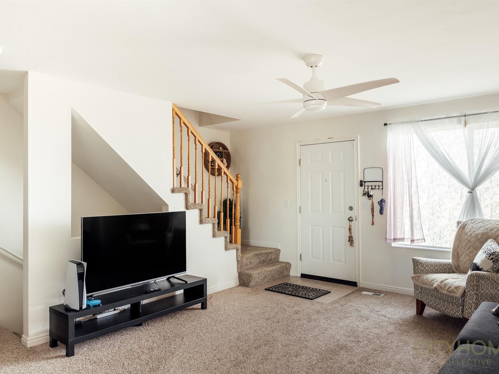 Upstairs, you’ll find all three bedrooms, a full bath, and convenient same-floor laundry, offering a comfortable separation between living and sleeping spaces while keeping daily tasks close at hand.