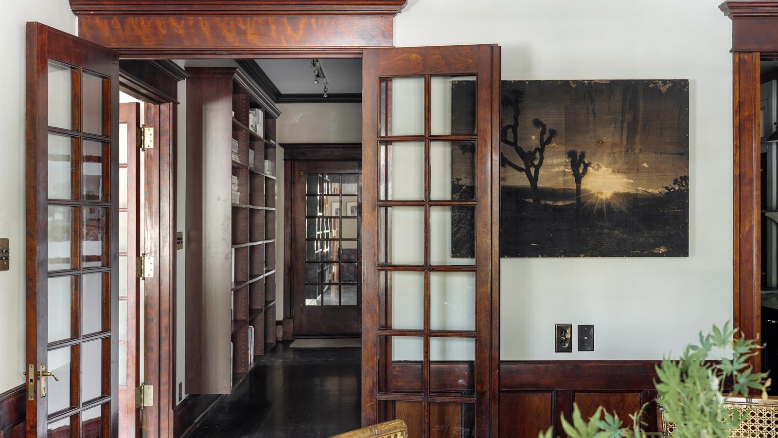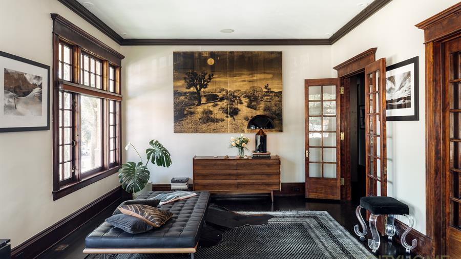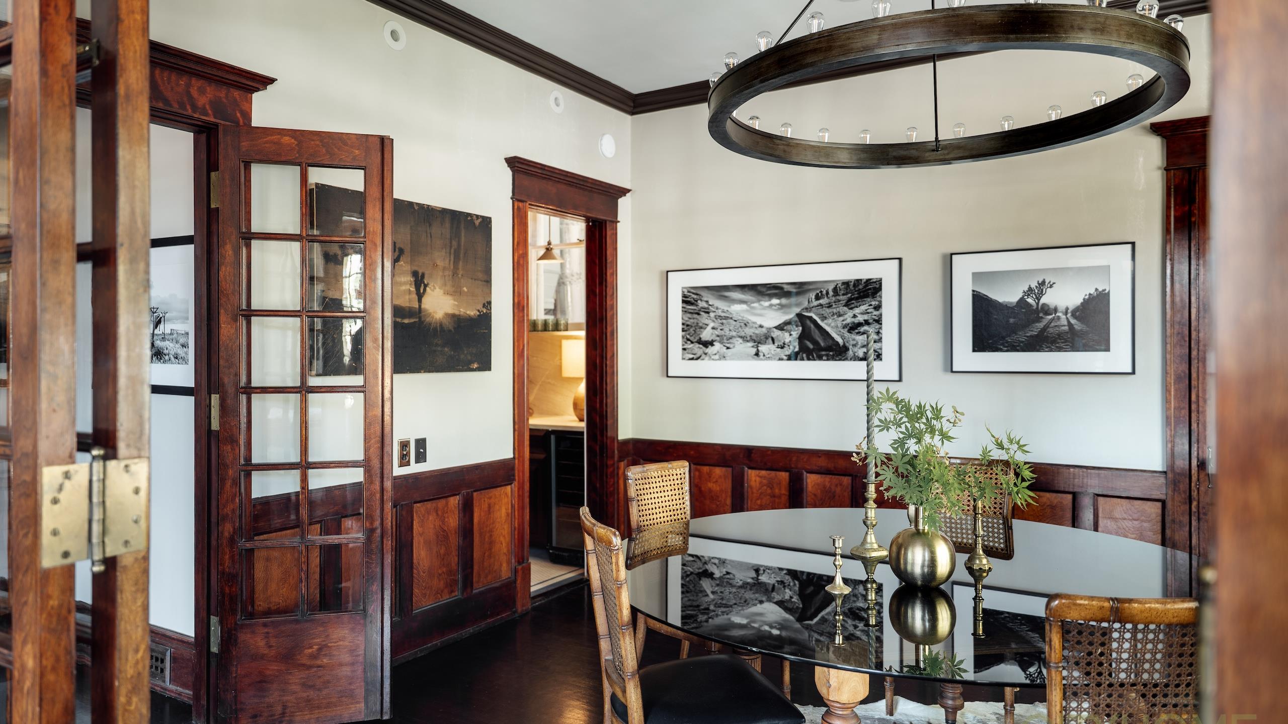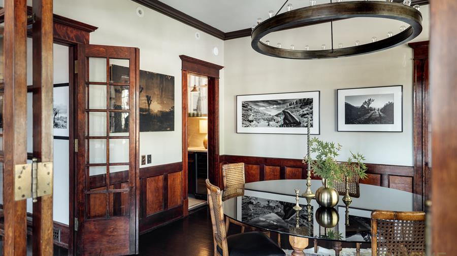 Step inside and you’ll find soaring ceilings, moody dark original woodwork, and the kind of architectural detailing that made the Maryland building a mainstay on South Temple. Original French doors—still intact here, though not in every unit—function perfectly to negotiate the spaces, offering both autonomy and connectivity depending on the need.