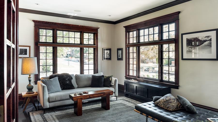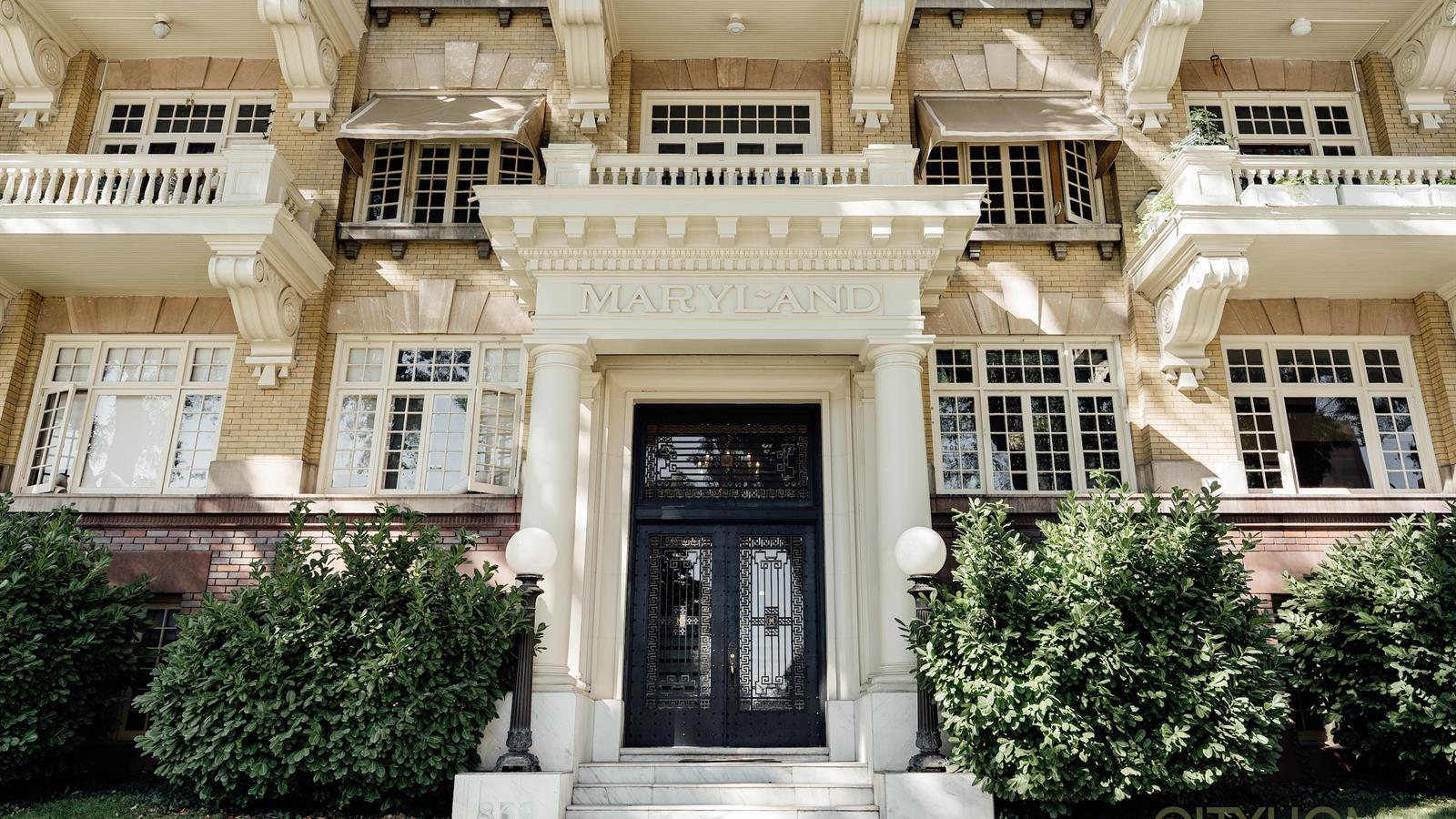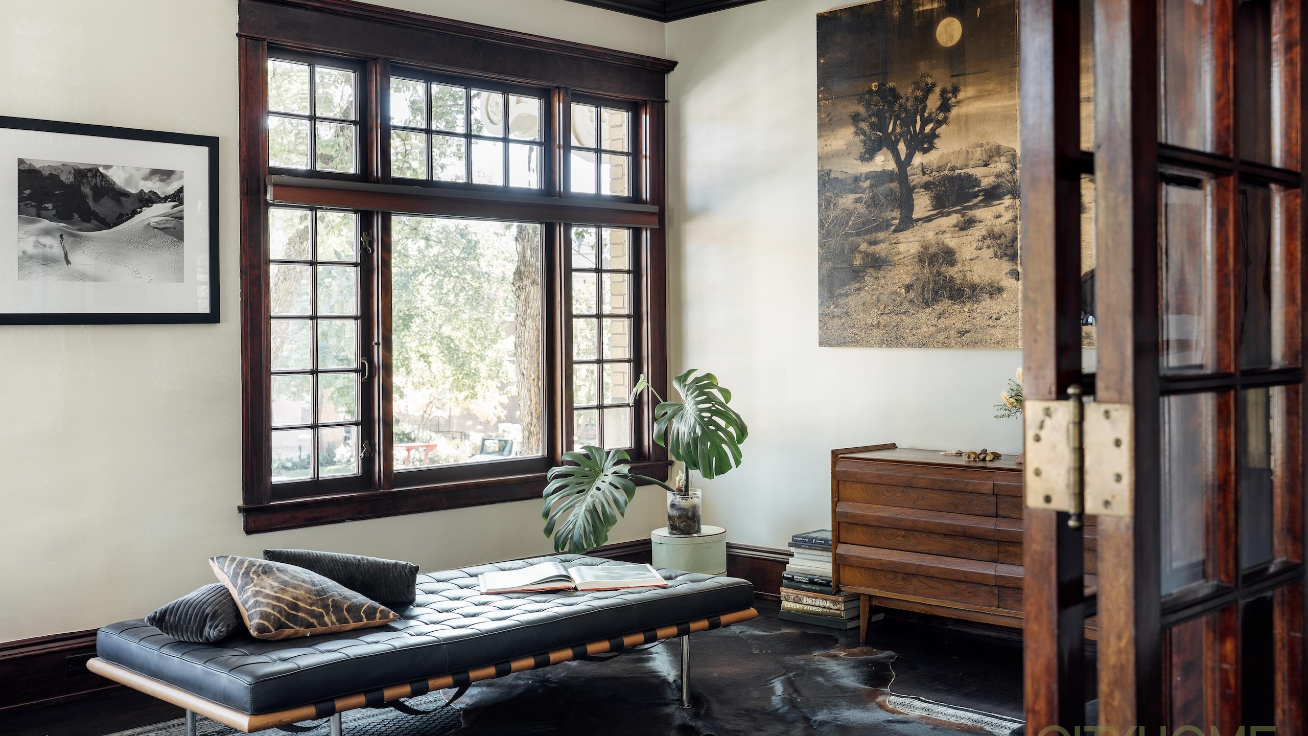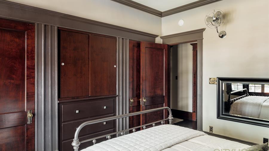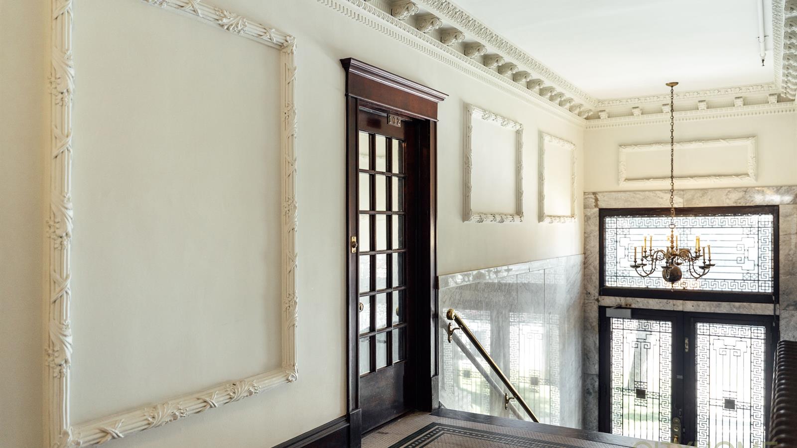 Step inside and you’ll find soaring ceilings, moody dark original woodwork, and the kind of architectural detailing that made the Maryland building a mainstay on South Temple. Original French doors—still intact here, though not in every unit—function perfectly to negotiate the spaces, offering both autonomy and connectivity depending on the need.