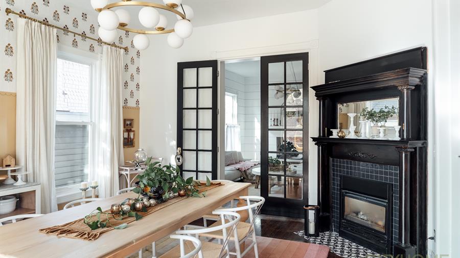 Upstairs features three bedrooms, including a primary suite with en-suite bath and fireplace, while the converted attic provides a beautiful bonus space or second primary suite. The remodeled backyard offers multiple patio areas, a pergola, and planter boxes, plus alley parking for three cars with room to expand the carriage house. Walkable to cafes, coffee shops, and neighborhood favorites.