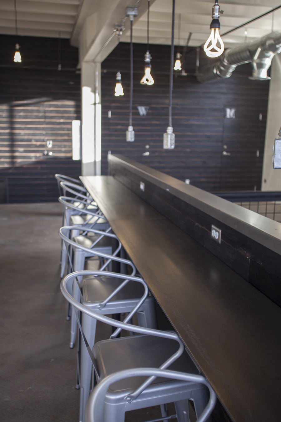 You have a boatload of solar panels on your roof. Chat with us about your commitment to being green…and tell us where else patrons may or may not notice your allegiance to environmental integrity. Matt: There was never a question for Missy and me. We were going to be as green as our budget allowed and thanks to help from the RMP incentive, that now includes solar. Our Diedrich roaster and after burner prevent us from contributing to Utah’s air quality issues, we recycle with Momentum Recycling, we use porcelain, glass and stainless dishware and eco-products (cups and utensils for to-go), a Big Ass Fan was incorporated with a well-thought-out HVAC system, reclaimed wood for all of the bars and counters and some of the tables. The sink in the roastery was originally onsite and put back into play. Greis: All of our railings are made from salvaged stem pipe from the Duchesne oil fields. We repurposed the original staircase handrail into a table base for one of our meeting rooms. My office has a cedar plank wall that was pulled from the wall of one of the old offices. We did our best during construction to salvage and donate everything possible. This included original doors and hardware, lightbulbs and scrap sheetrock … and literally THOUSANDS of pounds of paper, of every variety, intentionally left behind by the Jensens so we could “use or sell” it. Every sheet ended up in the hands of a multitude of schools and nonprofits.