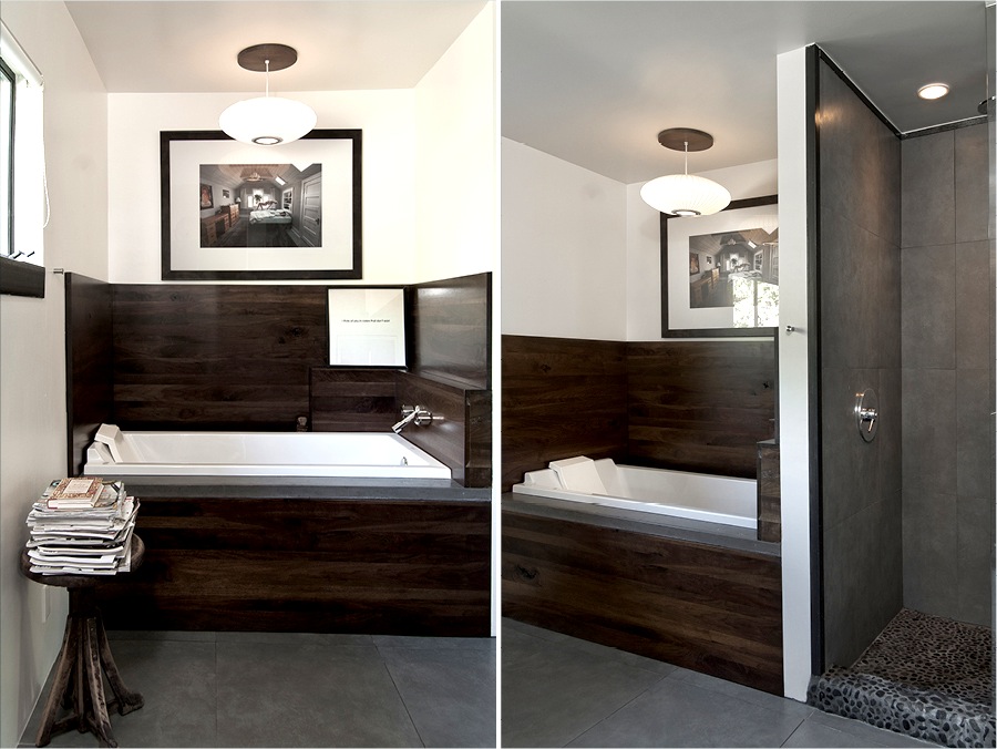 4) The Apollo House. It's certainly not the first time we've gushed about the house on Apollo, but we feel certain it won't be the last, either. It also made the list for our fave pools and best fireplaces, but the tub in the main suite here is no slouch. We all love a good alcove tub, especially when the surround is a rich, dark wood, accompanied by just the right design touches. We're envisioning the lights dimmed and a slew of candles on all available surfaces. See what we did there? Full story here.