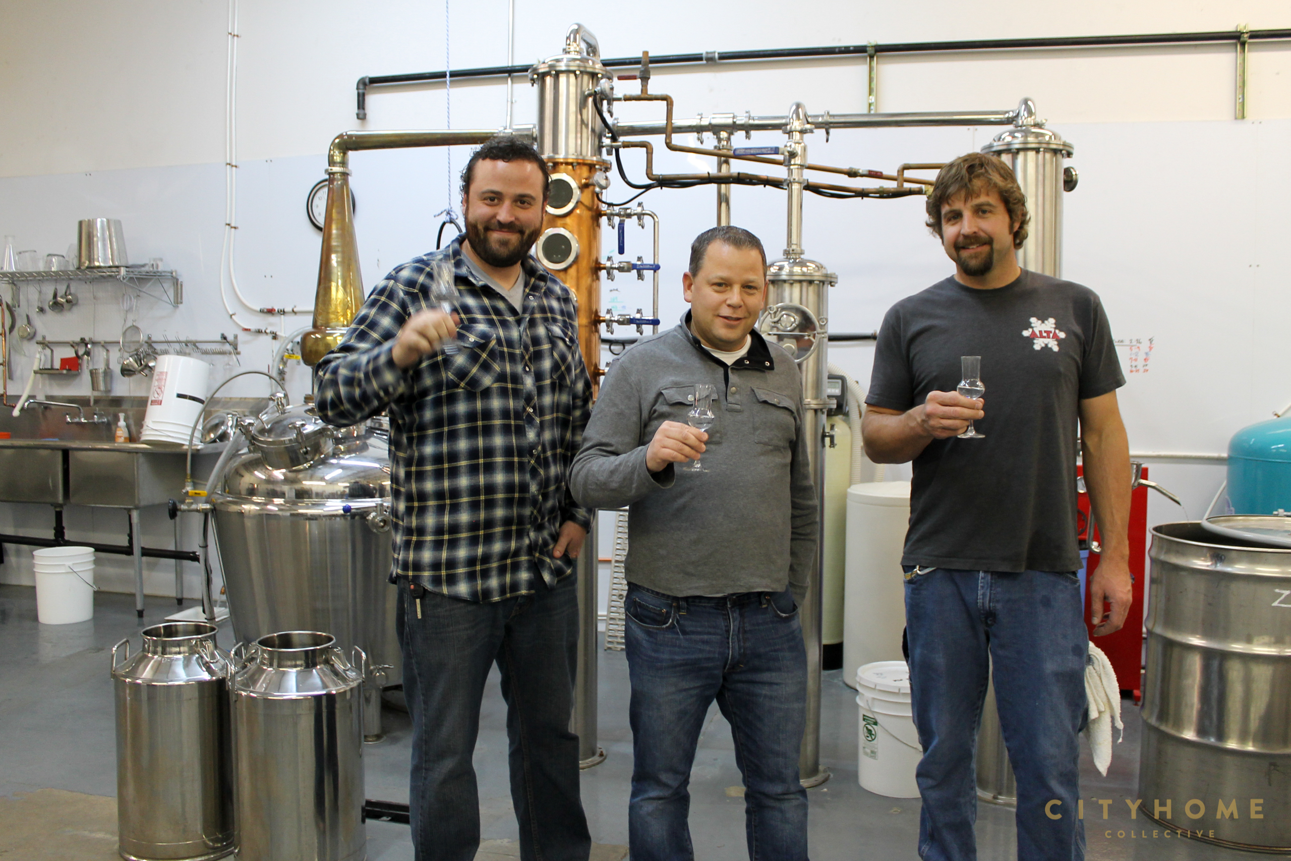 It’s a not-very-well-kept secret in the liquor industry that many ‘distilleries’ bypass the expensive and time-consuming work of fermenting and distilling their own mash. They’ll purchase bulk spirits from other manufacturers, and then depending on the end product, may further distill, dilute to desired proof, flavor, infuse, barrel-age, or blend their spirits before bottling. Some of ‘em end up being pretty damn superb, some not. The guys at Sugar House Distilling have eschewed this method so that they can control the beverage from start to finish, bless their OCD hearts. Says lead distiller, Eric Robinson [formerly of High West], “you can change the flavor profile of spirits at so many points in the process; depending on the grains in your mash bill, the yeast strain you pick [for fermentation], and the type of still you use.” Along with owner/distiller James Fowler and assistant distiller/sales guy Jake Wood, Robinson has been making their first release, Sugar House Vodka, available in DABC stores and their package store. It’s a delightful sipping vodka that even this whiskey gal can appreciate: crisp, a little floral, with soft vanilla and mineral flavors that come through from the wheat-forward mash. Bangin’ straight from the freezer as the Russians do, or on point for making truly kick-ass Martinis or Moscow Mules. The distillers are justifiably proud of their vodka, but that’s just the beginning of their spirits line-up, which includes a barrel-aged malt whisky release this month, and rum available in 2015.