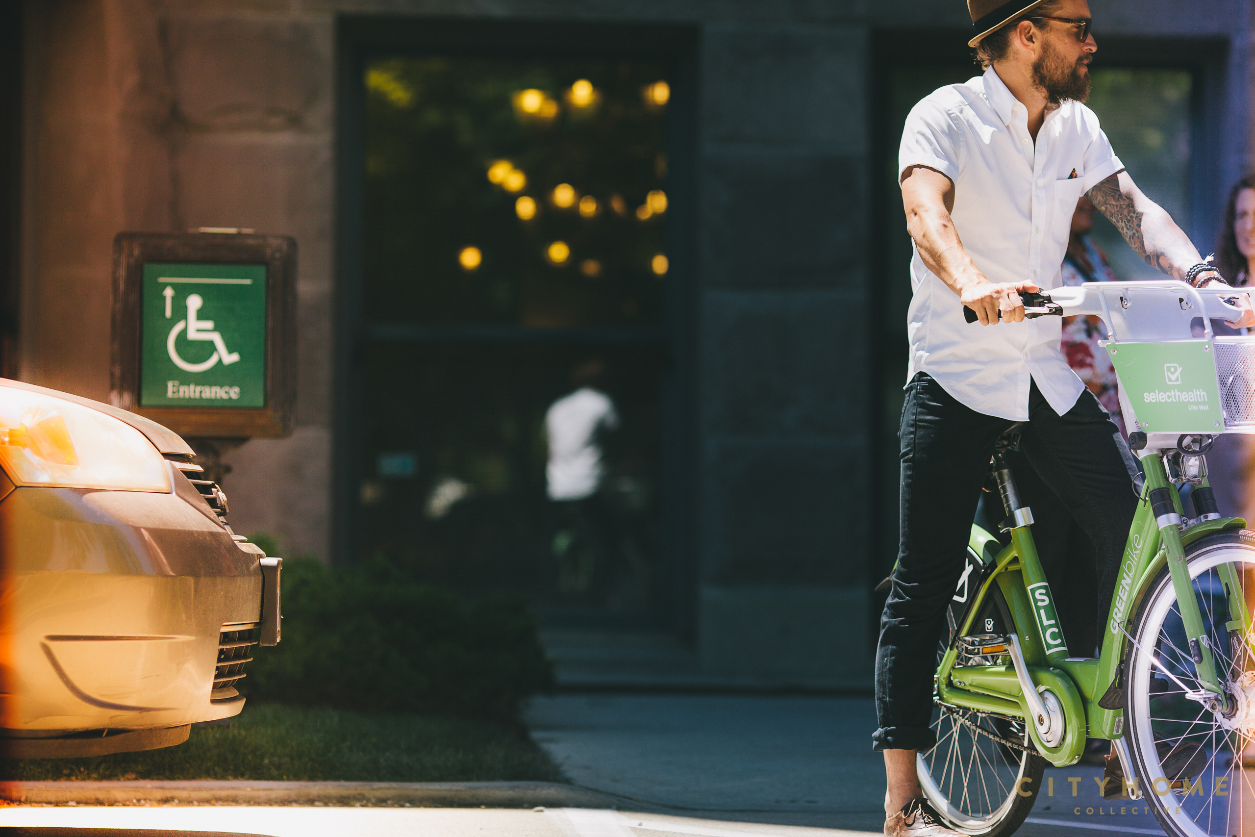 There are plenty of times when it’s convenient or crucial to have someone else do the driving. The convergence of technology and consumer demand has brought Transportation Networking Companies [TNC’s] like Lyft and Uber ‘a knocking at SLC’s door, and city officials are diligently at work streamlining these freelancers safely into the vehicular community. Fer example, those ubiquitous pink mustachio-ed Lyft cars are popping up all over our fair city, and with good reason: it’s dead easy and convenient to use. Lyft driver and hilarious person, Angie Palmer, acknowledges that Lyft serves a lot of people who by pre-planning or unintentional overindulgence wisely choose to order a car rather than drive their own rig home from the bar, saying “yeah, we take care of the party people.” But, she says that being a Lyft driver has also introduced her to lots of people who use the service because they can’t drive, “I have quite a few blind clients, and elderly people out running errands or going to doctors appointments. They love the service.” Also, the existing taxi cab contracts with the city expire this fall, and according to the Mayor’s chief of staff David Everitt, this makes for the perfect opportunity to make some positive shifts in reducing both the kinds of vehicles on the road and the emissions they produce: new cab company contracts will require that city taxis be low emission vehicles. Boo-yah. All in all, things are getting easier and breezier for those days when you’re up for ditching the car, or maybe considering downsizing to one car per family. Read on for the up and coming, then peruse the photos wherein we took a cool and breezy bike ride with Mayor Becker. No big deal.